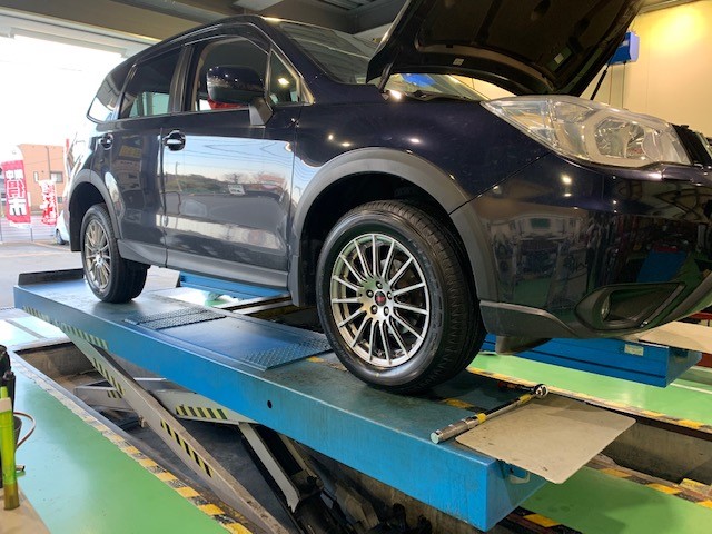 本日の作業入庫したお車スバルのフォレスターになるのですが、新品の夏タイヤへ交換の作業をさせて頂きました!