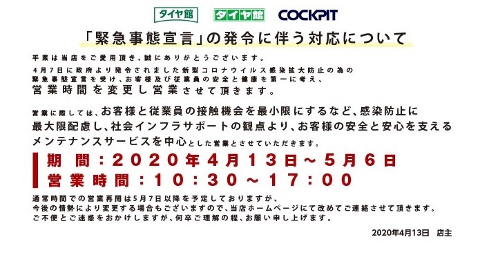 10:30~19:00まで(作業最終受付 夜18:00)