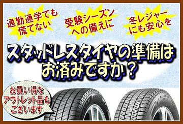 夏用タイヤからスタッドレスタイヤに履き替えのシーズンです。 タイヤ館では、現在、履き替えのご予約がかなり入っており、すでに予約一杯になっている日もありますので予約はお早めに。 履き替えのご予約は、ご覧いただいてます「タイヤ館ホームページ(Web)」からタイヤの履き替え予約が可能です...