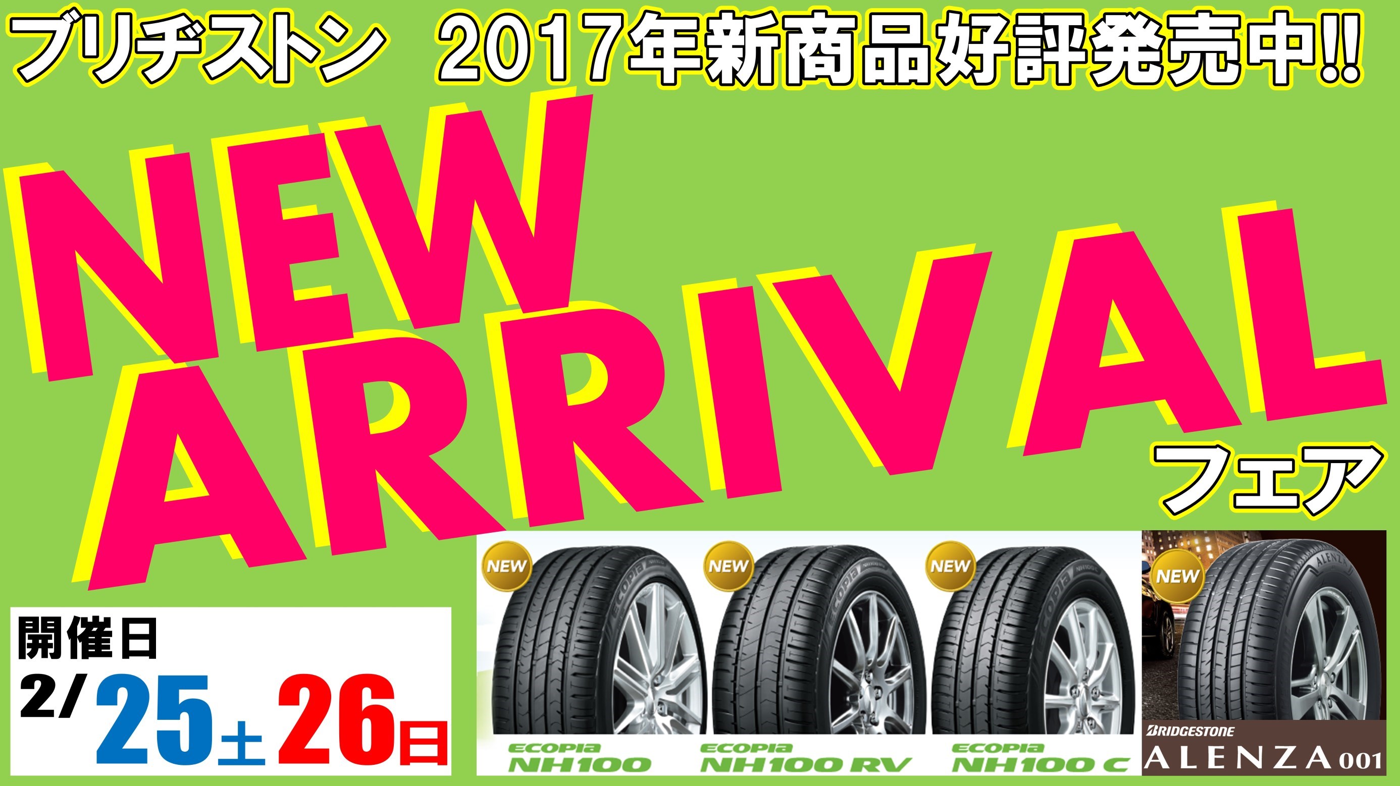 2/25(土)、2/26(日)の二日間 「NEW ARRIVAL フェア」開催します!! ブリヂストンから2月に新発売した エコピア NH100シリーズ アレンザ 001 をご紹介するプチイベントとなります! この春、夏タイヤの交換を考えて見える方も、そうでない方も 空気圧点検のみでもOKです!! ぜひお立ち寄りください♪♪