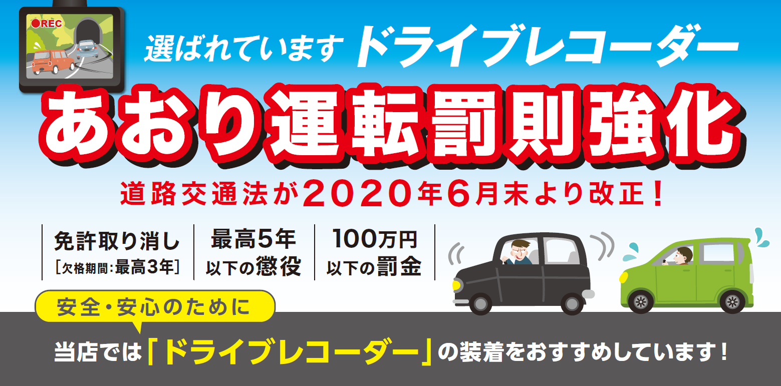 江南でドライブレコーダ取り付けはタイヤ館江南で! 取り付け事例も多数!国産車だけでなく、輸入車も多く取り付けております! 道路交通法が2020年6月末より改正されました。 危険なあおり運転に対する罰則強化されました。ドライブレコーダーはそんなあおり運転の対策としては非常に有効です。し...
