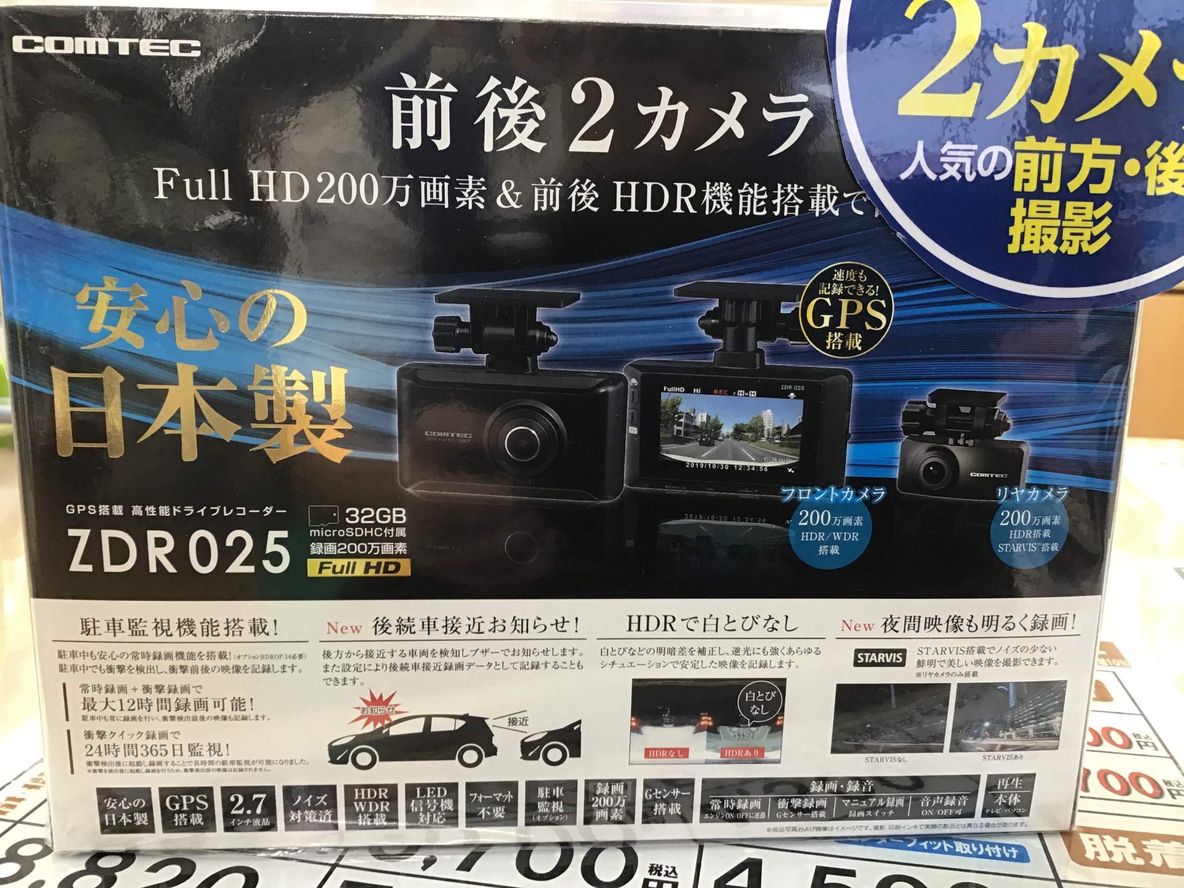 コムテックの前後2カメラドライブレコーダーZDR025
