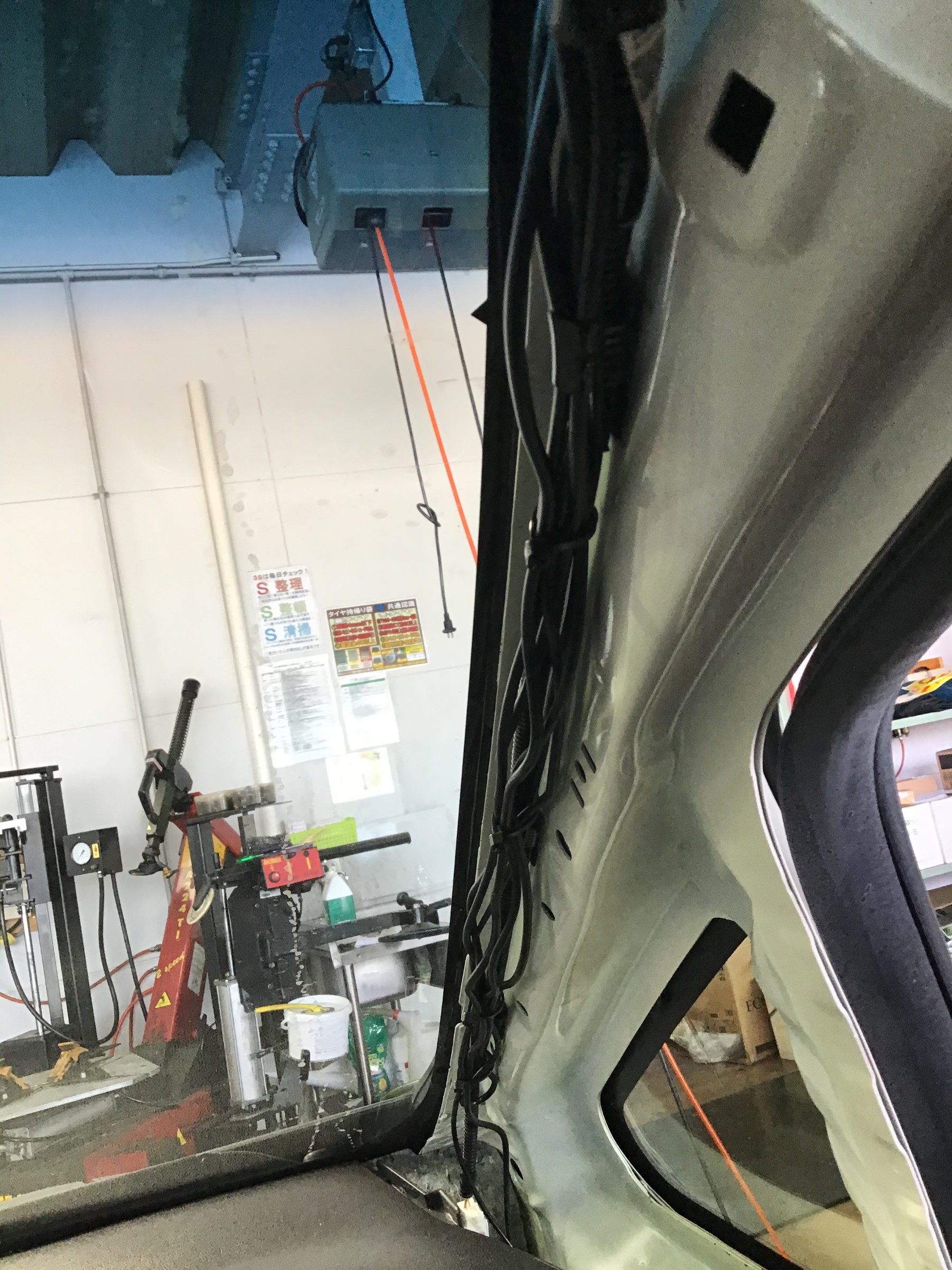 フロントカメラは脇のAピラーを外して配線を通し、足元に配線をもっていき