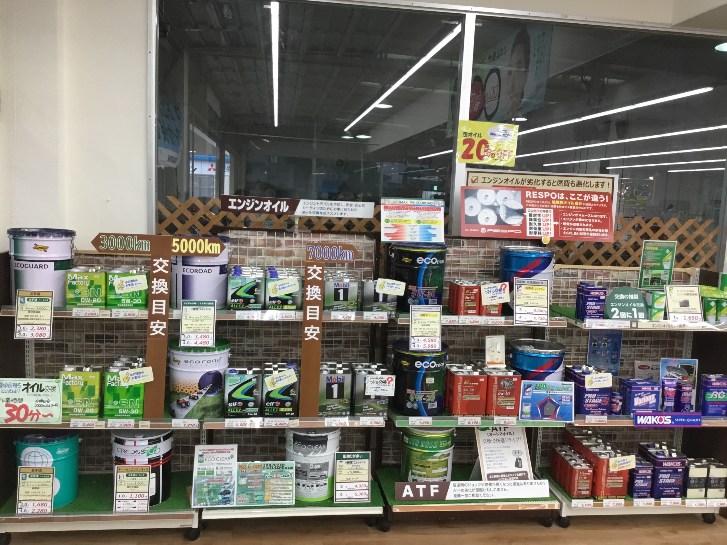 これまでより棚の数を増やし、交換推奨距離によってオイルの種類を分けました!
