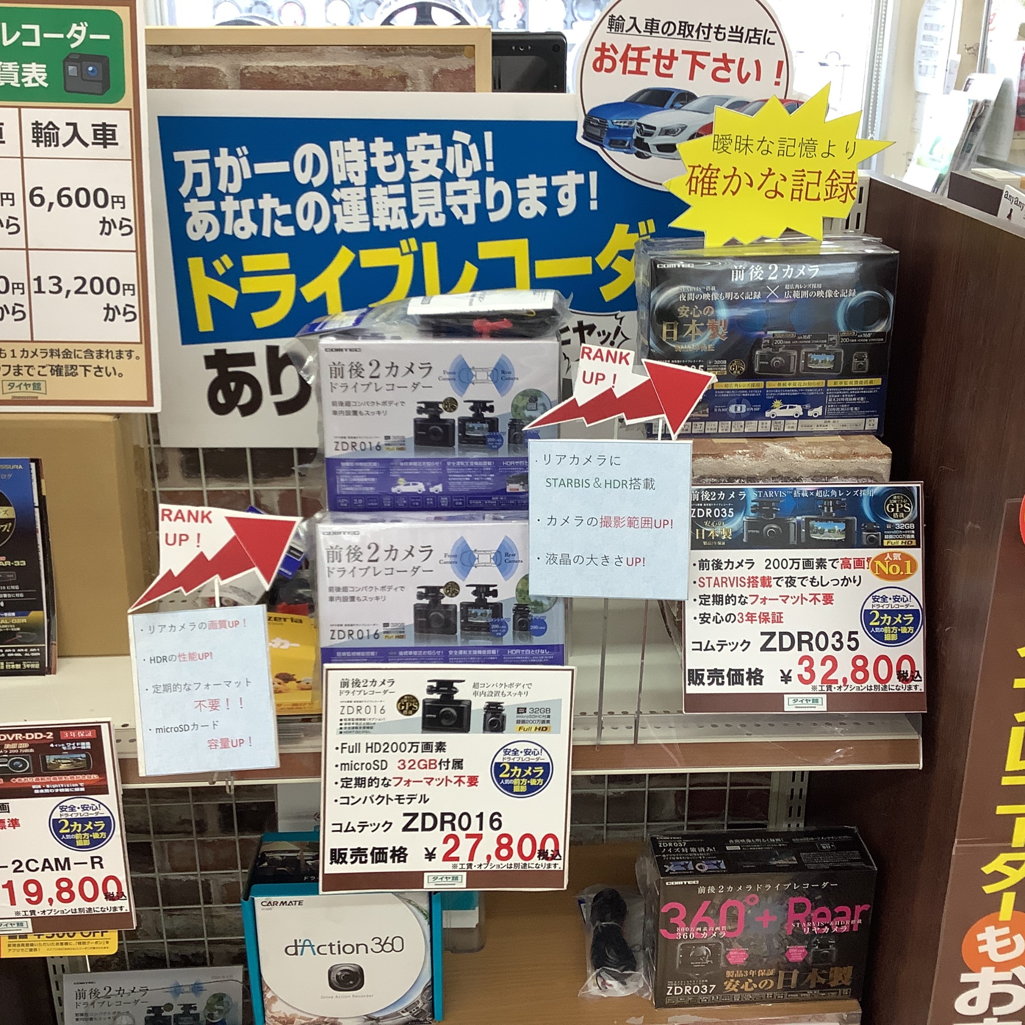 タイヤ館郡山ではドライブレコーダーも取り扱っております!