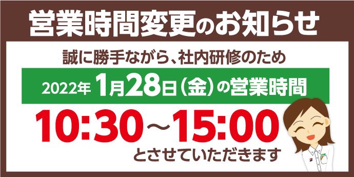 営業時間変更のお知らせです。