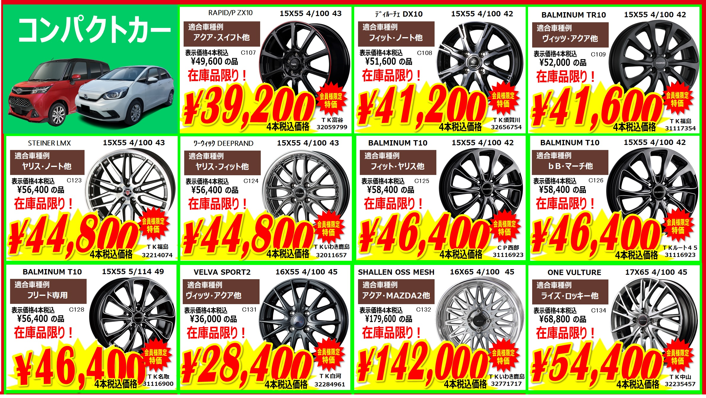 アルミホイール お買い得品 徹底大放出! 在庫限り 【タイヤ館郡山】