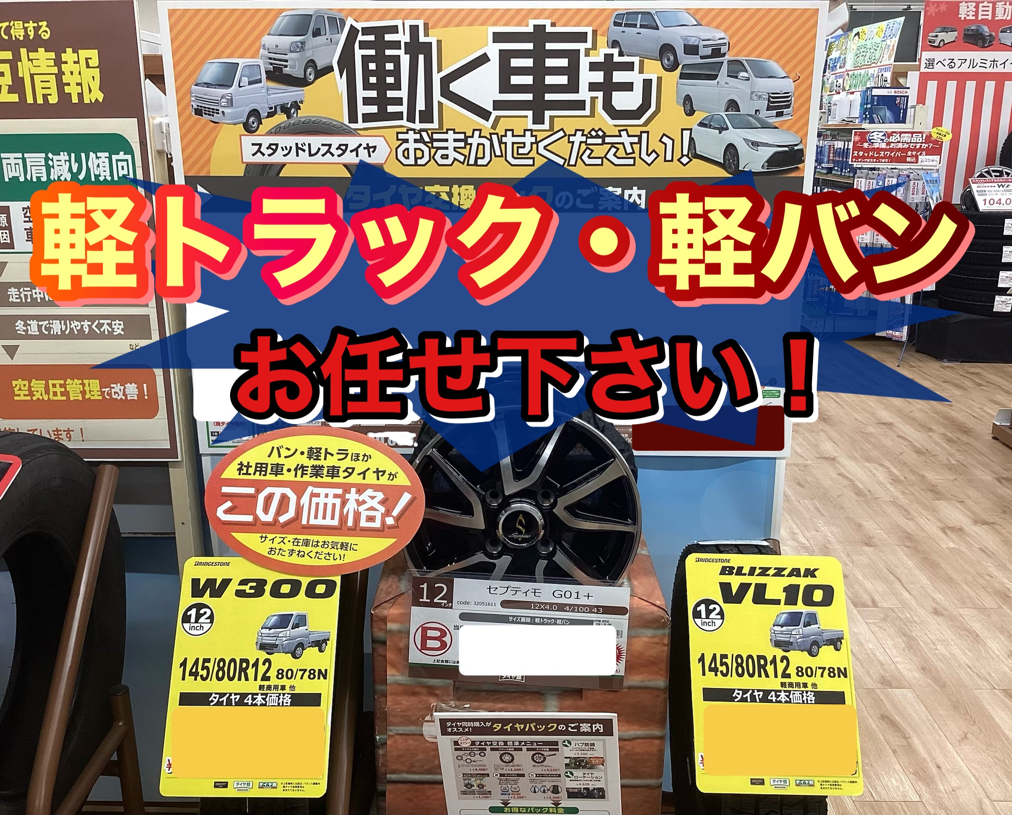 働く車 軽トラック、軽バンもご相談下さい! スタッドレス アルミホイール 【タイヤ館郡山】