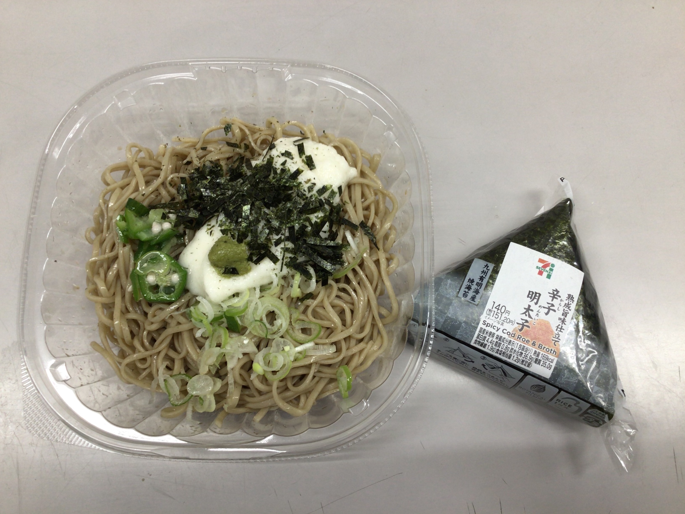 とろろ冷やしそば 辛子明太子おにぎりです(o^^o)