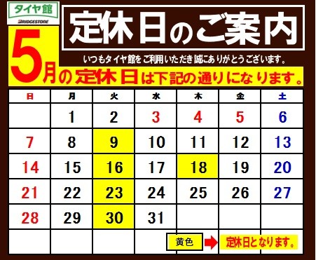 5月の定休日案内!