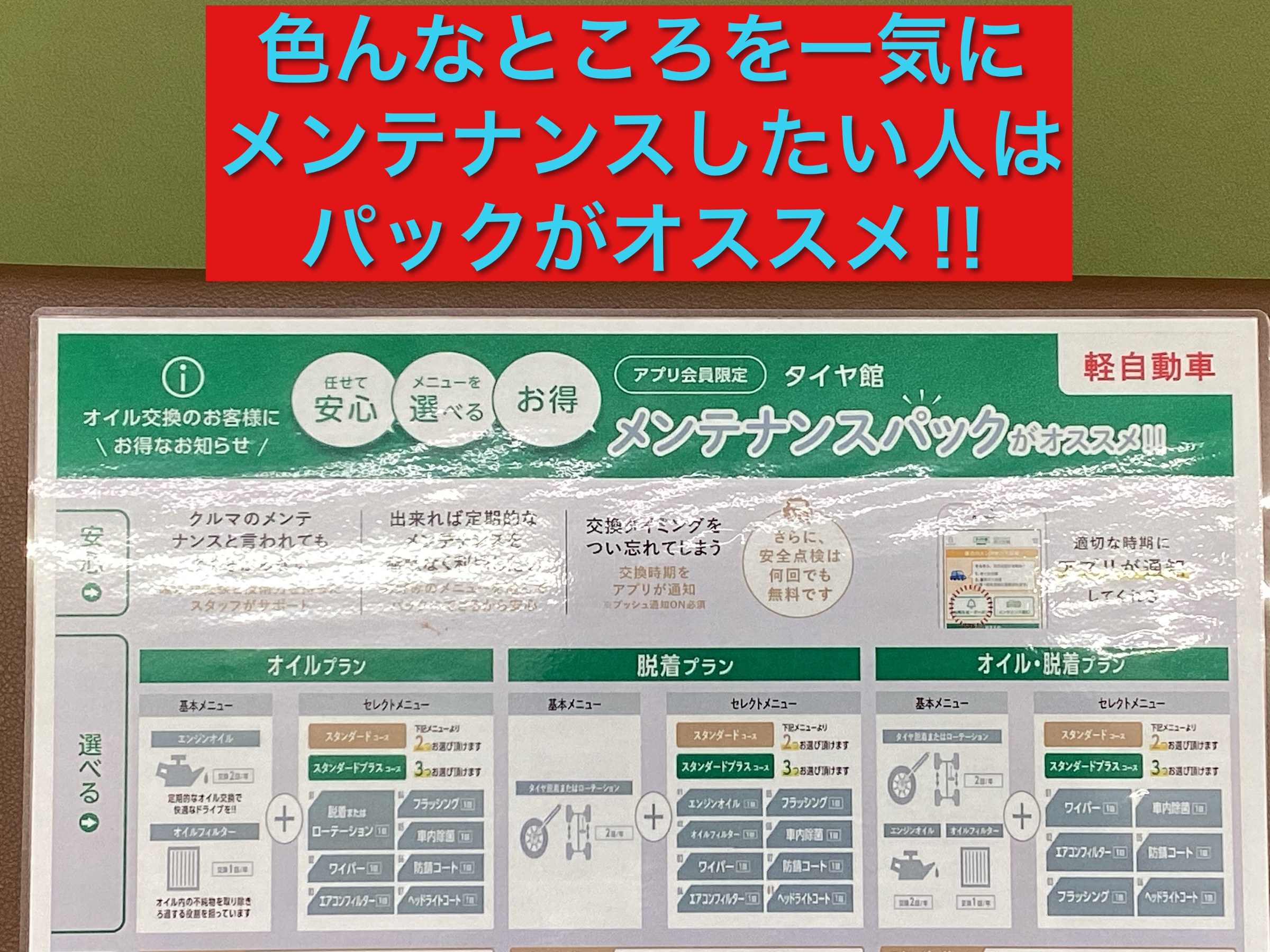 そんなお客様方にお得なメンテナンスパックのご案内です、当店のパックはオイル交換、タイヤ交