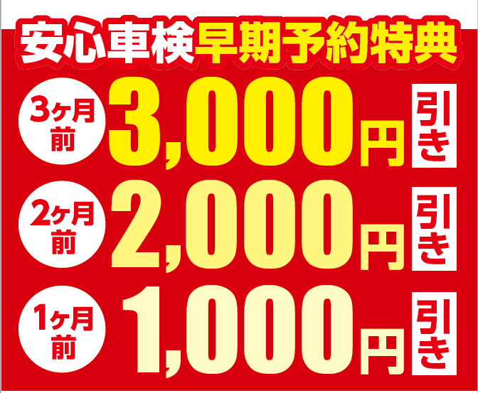 車検満了日から前もってご予約いただくと車検費用から最大3,000円引きになります!