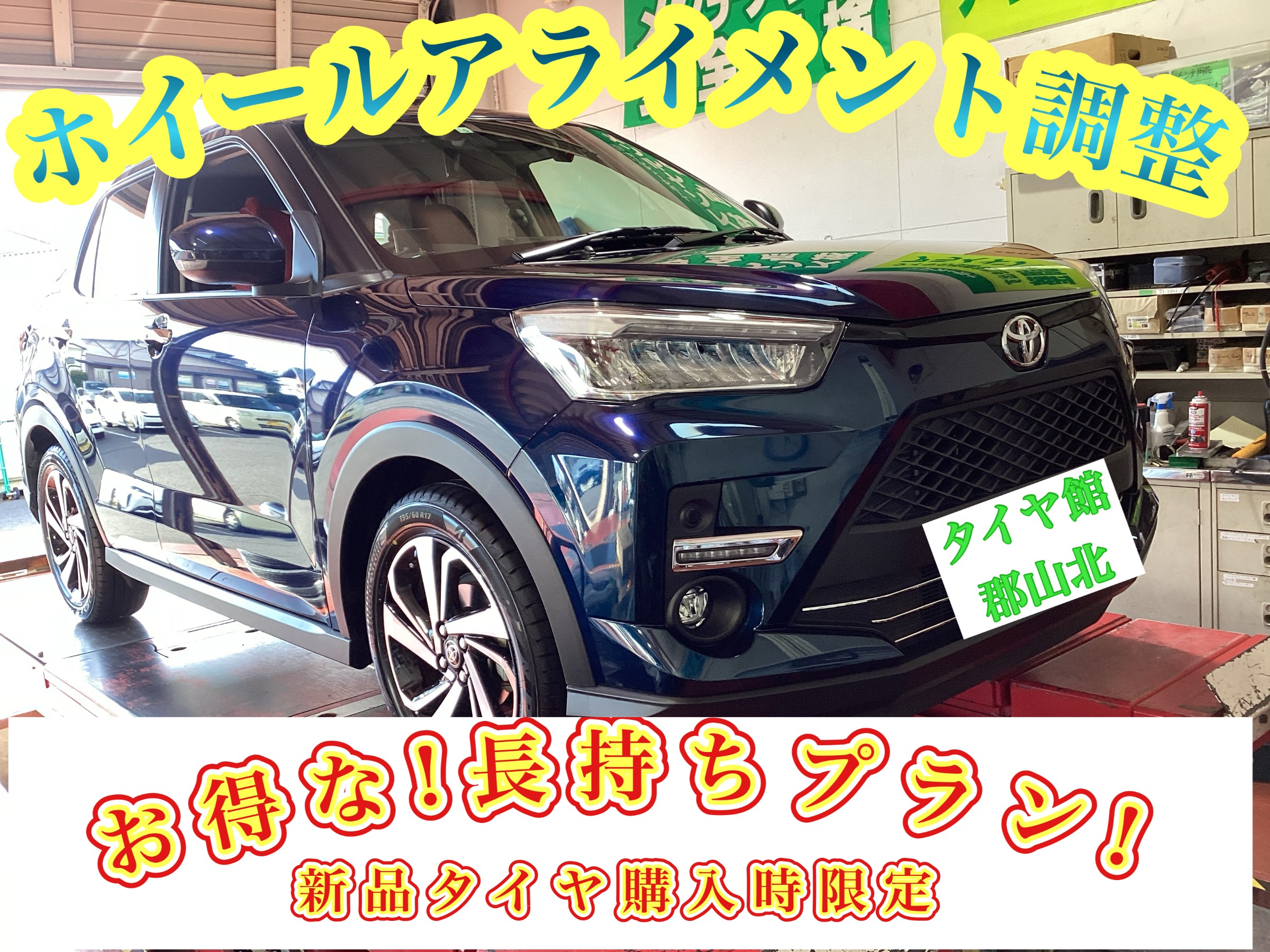 タイヤ館のタイヤ長持ちプラン アライメント調整【タイヤ館 郡山北】