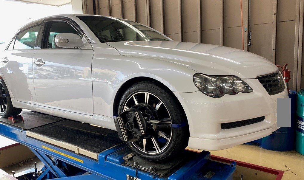 今回ご紹介するのはマークXへタイヤとホイールを装着し、仕上げにアライメント調整です★