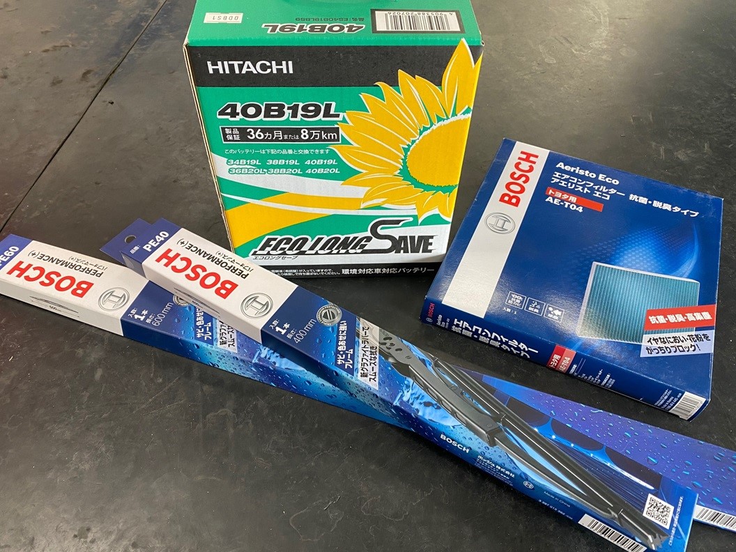 トヨタ カローラフィールダー タイヤ交換+バッテリー交換+ワイパー交換+エアコンフィルター交換