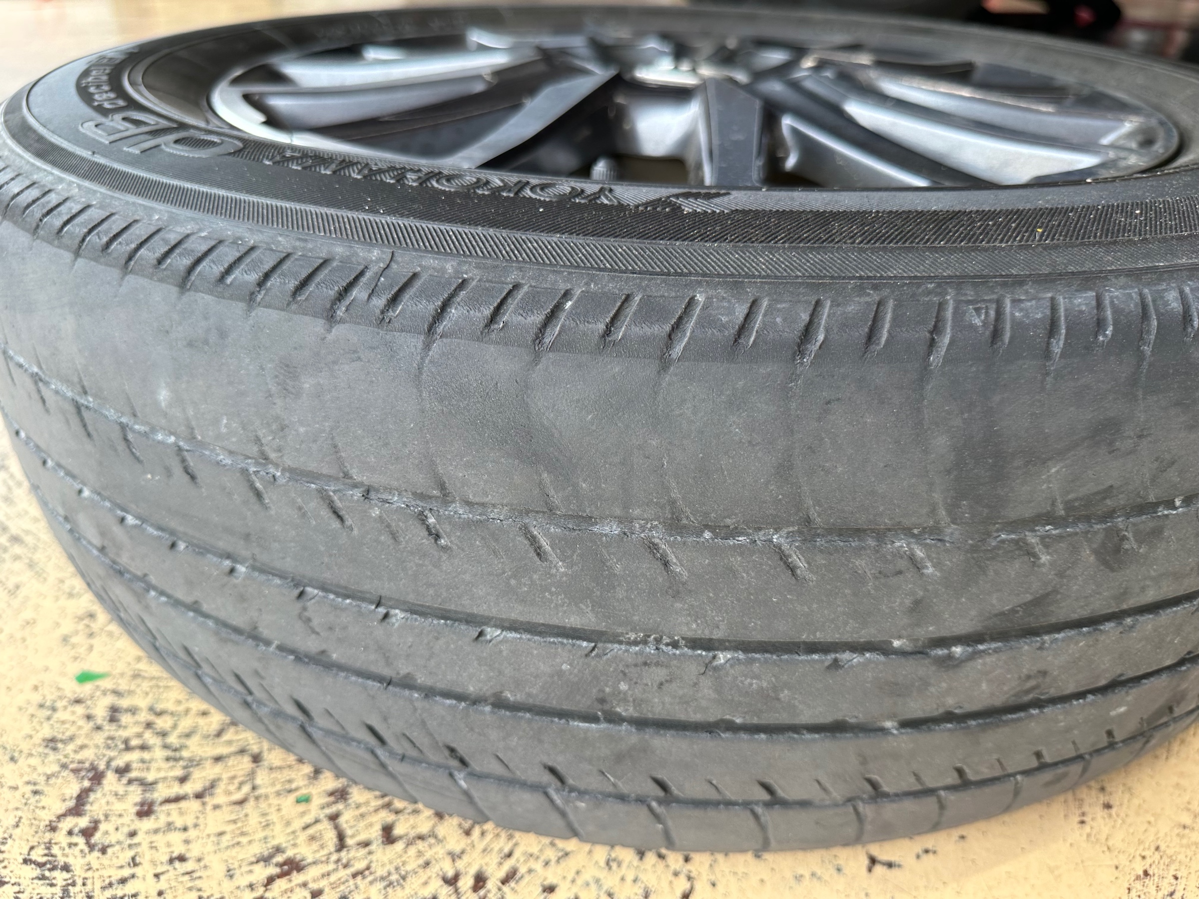交換前のタイヤは溝もなく、劣化が見受けられます。