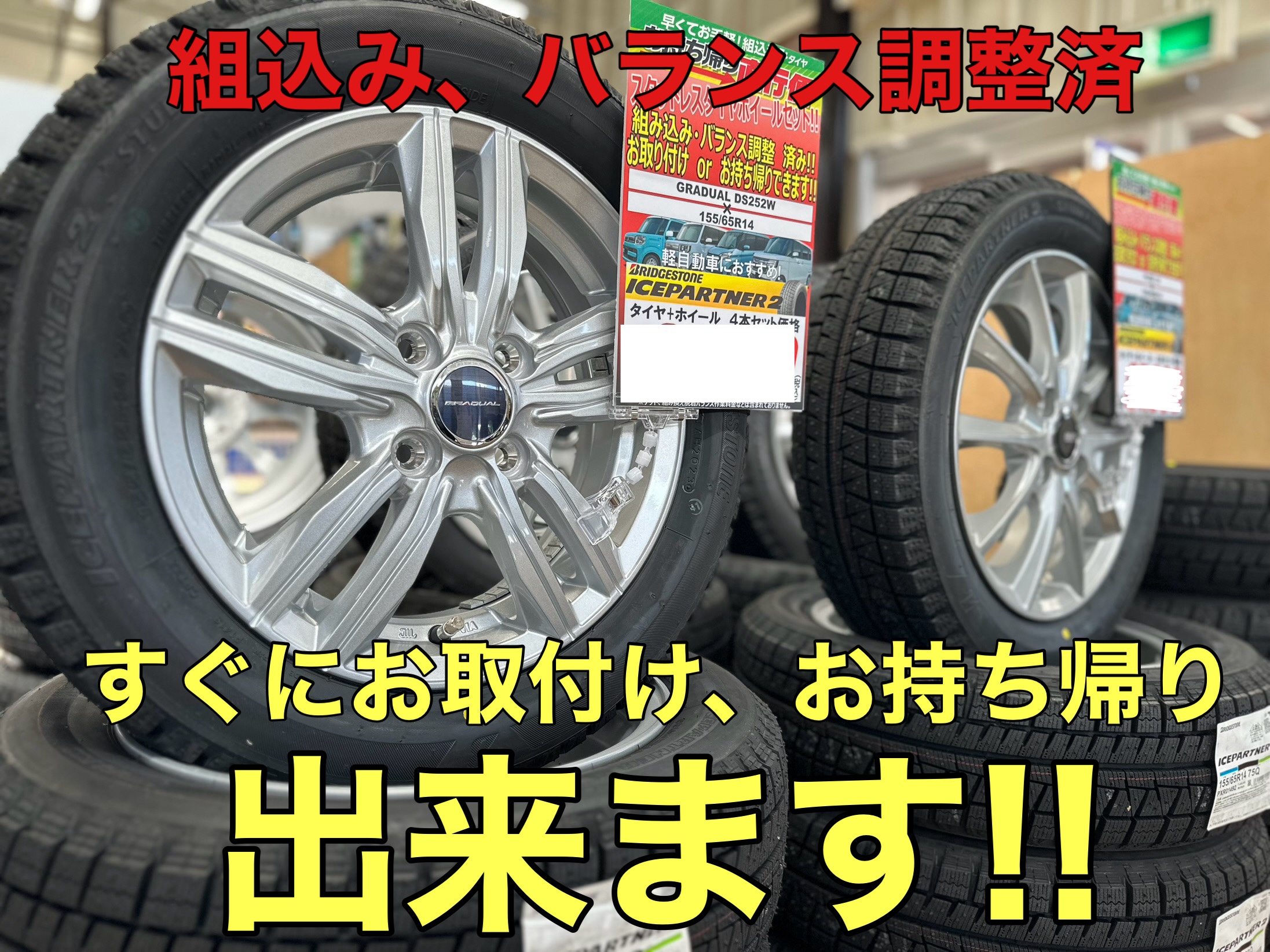 お取付けは後日でも大丈夫ですのでタイヤ購入のご予定のある方は