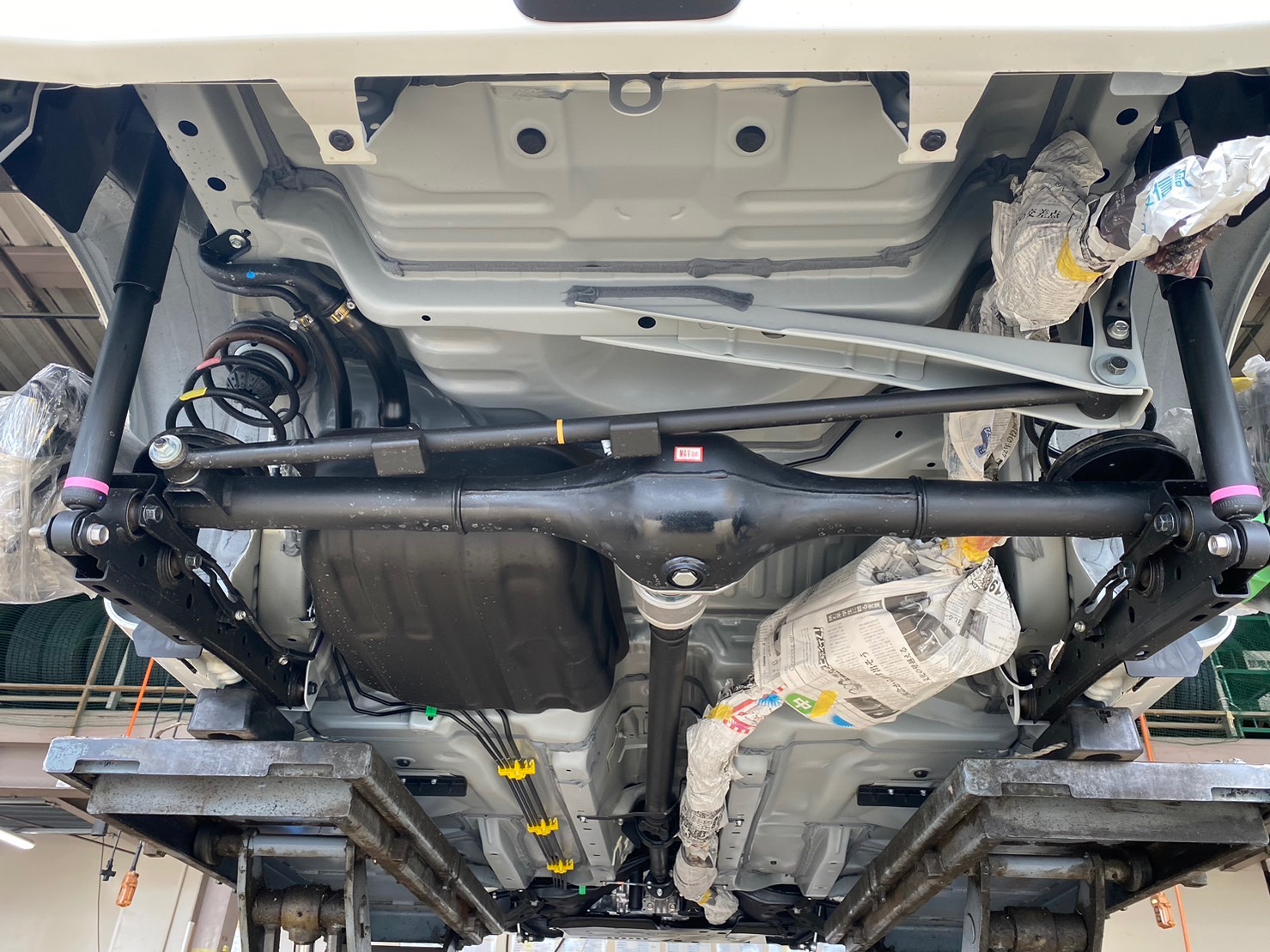 足回りもタイヤを外し、ショックアブソーバ・サスペンションに