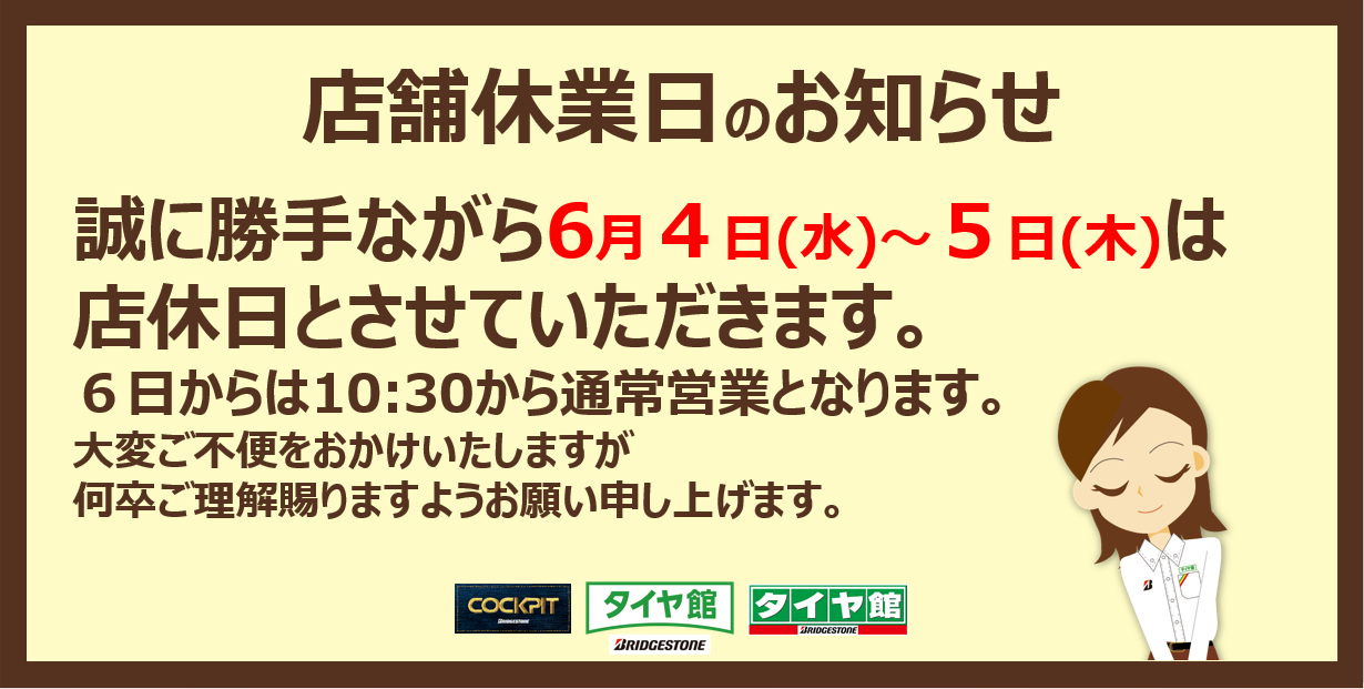 店舗休業日のお知らせ
