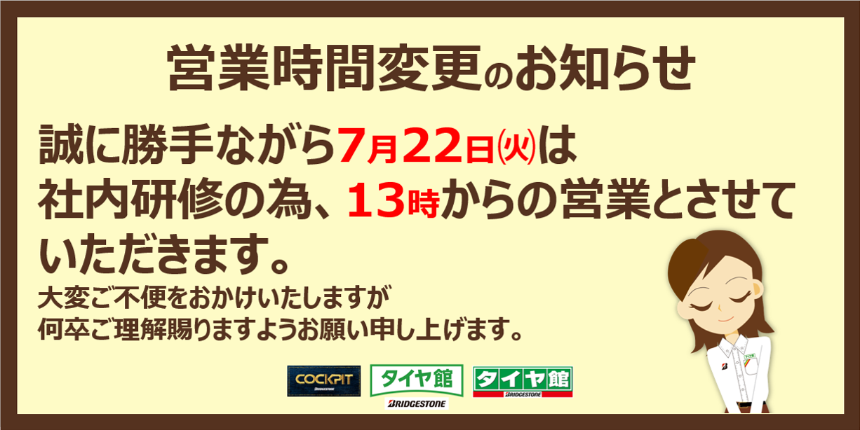 本日の営業時間のご案内