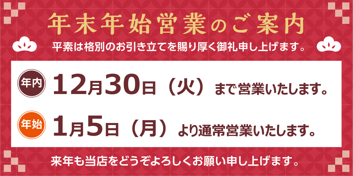 ☆今年もありがとうございました☆ ポスト 2025年12月30日 いよいよ今年も最終日となりました。 今年も一年、タイヤ館こせを御愛顧頂きありがとうございました。 新年は5日からの営業になります。 来年もどうぞよろしくお願い申し上げます。 タイヤ館 こせ 住所:400-0851山梨県甲府市住吉4丁目23-5 電話番号: 055-224-1115 カテゴリ:お知らせ 担当:白井