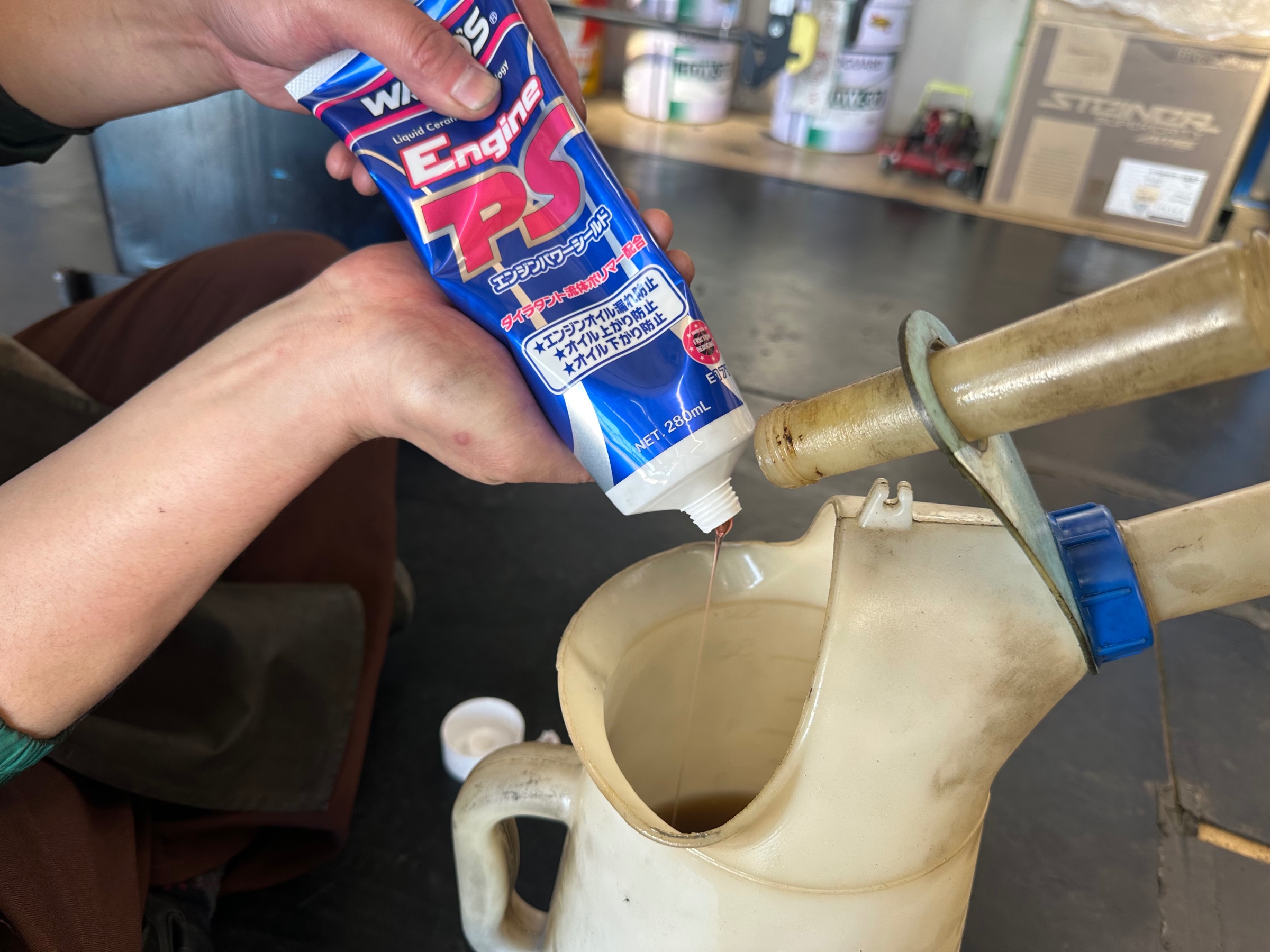 エンジンオイル交換時に新しいオイルに混ぜて使用します。