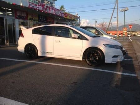 ホンダインサイト アルミセット取付け ポスト 2016年4月22日 本日の作業の紹介です!ホンダインサイトにアルミセット取付けをしました。タイヤ 185/55R16 EX20Cホイール ブリヂストン バルミナS5 16X60 4/100 +52白いボディに黒いホイールは映えますね!同時に空気圧センサーTPMSも装着T様、ありがとうございました! 担当:西田