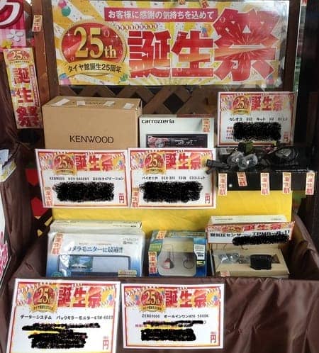 タイヤ館生誕25周年イベント 2日目 ポスト 2016年6月12日 昨日から開催中のタイヤ館生誕25周年イベントではたくさんのお買い得な用品類多数用意しております。1DINデッキやナビゲーション、HID、タイヤWAXなどお得価格になって販売しております。一度足を運んでみてください☆