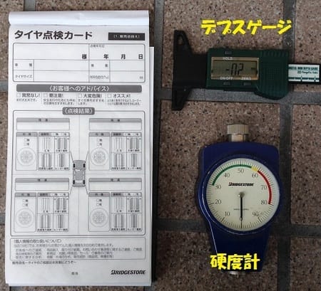 ☆タイヤ問診の必需品です☆ ポスト 2016年7月11日 タイヤ館ではタイヤの問診の時にタイヤ点検カードを使用して現状のタイヤ状況が細かく分かるよう点検させて頂いています。溝の残量はデプスゲージを使い1mm単位で測っていきます。タイヤの劣化や硬さは硬度計を用いて目では確認できないタイヤの状態も調べさせていただいていますこのような点検表や機器を使いお客様にあったタイヤをオススメする事が出来ますタイヤの事で疑問があれば一度点検してみてください。