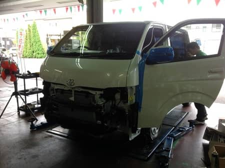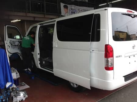 ハイエースに取り付け中☆