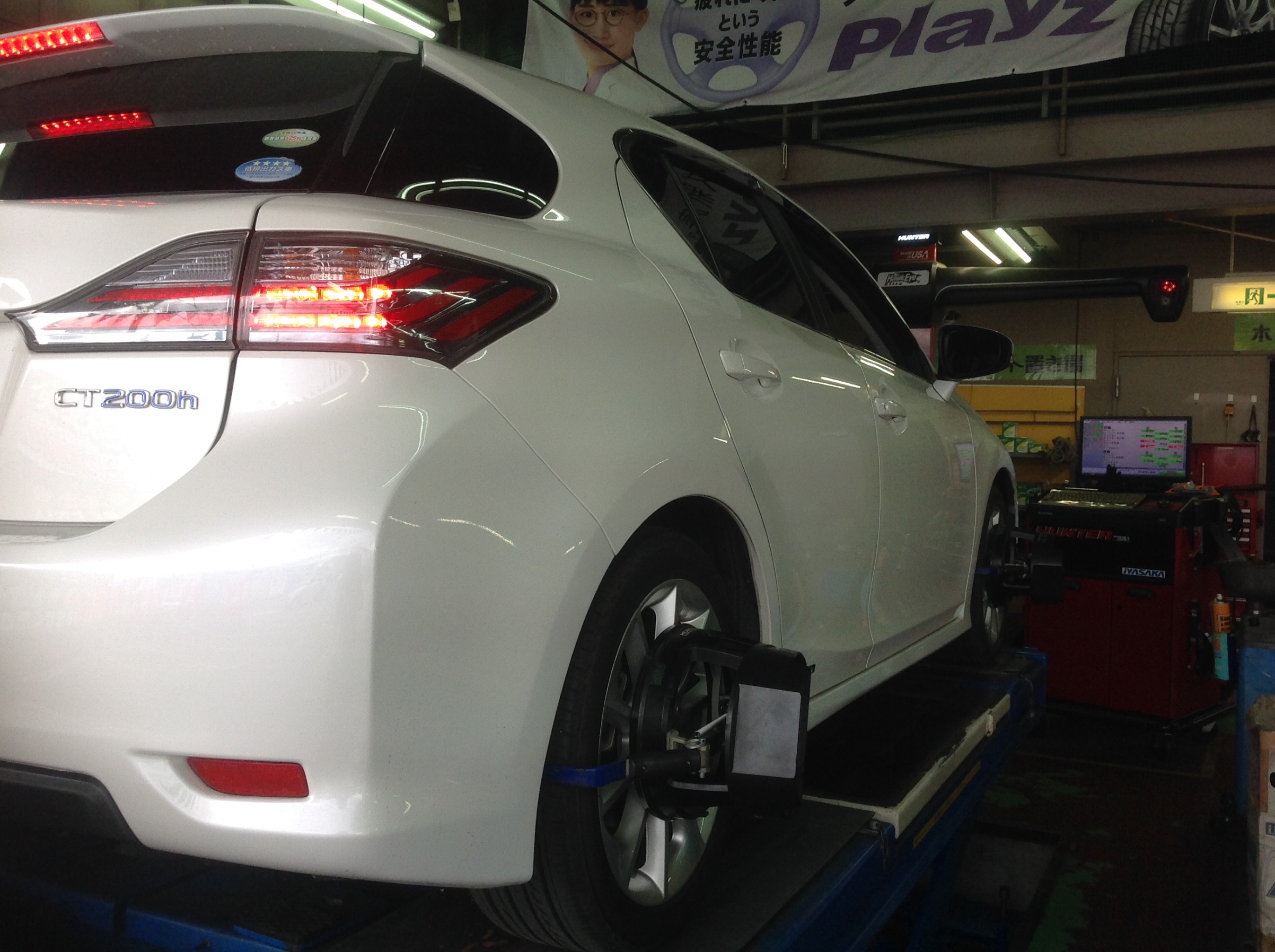 アライメント実施☆ ポスト 2017年4月8日 今日のこせ店では アライメント調整をしています。 お車はレクサスのCT200h ハンドルが左に流れるという症状があり ご予約頂き、ご来店されました。 軸がずれてしまう原因は 縁石にぶつけてしまったり 車止めにぶつかってしまったり 乗り上げてしまったり様々ですが 運転中に何度もハンドルをなおしたり ストレスを感じる場合には アライメント調整をお勧めします! アライメント作業は随時予約受付中!! お電話にてお問い合わせ下さいね!