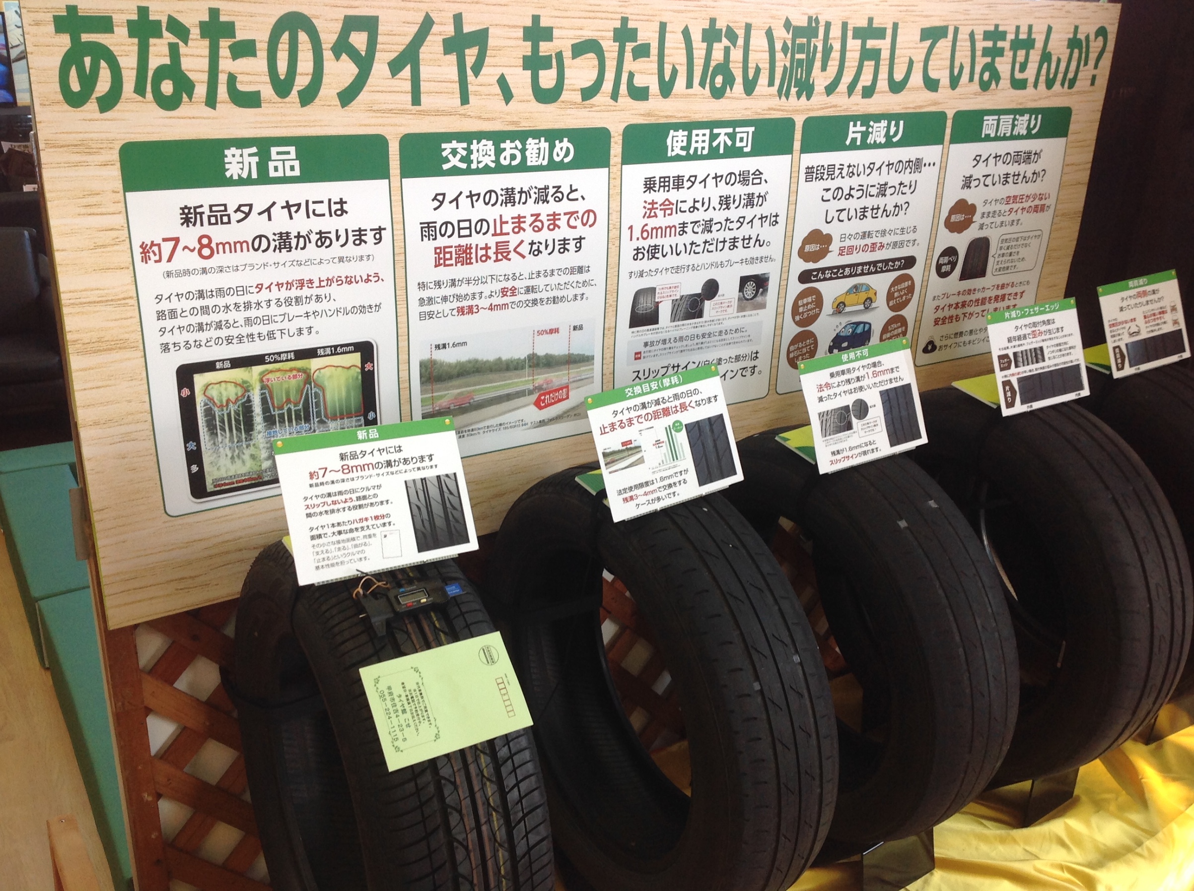 タイヤの溝に交換サインもありますので、気になった方は是非一度ご来店ください!