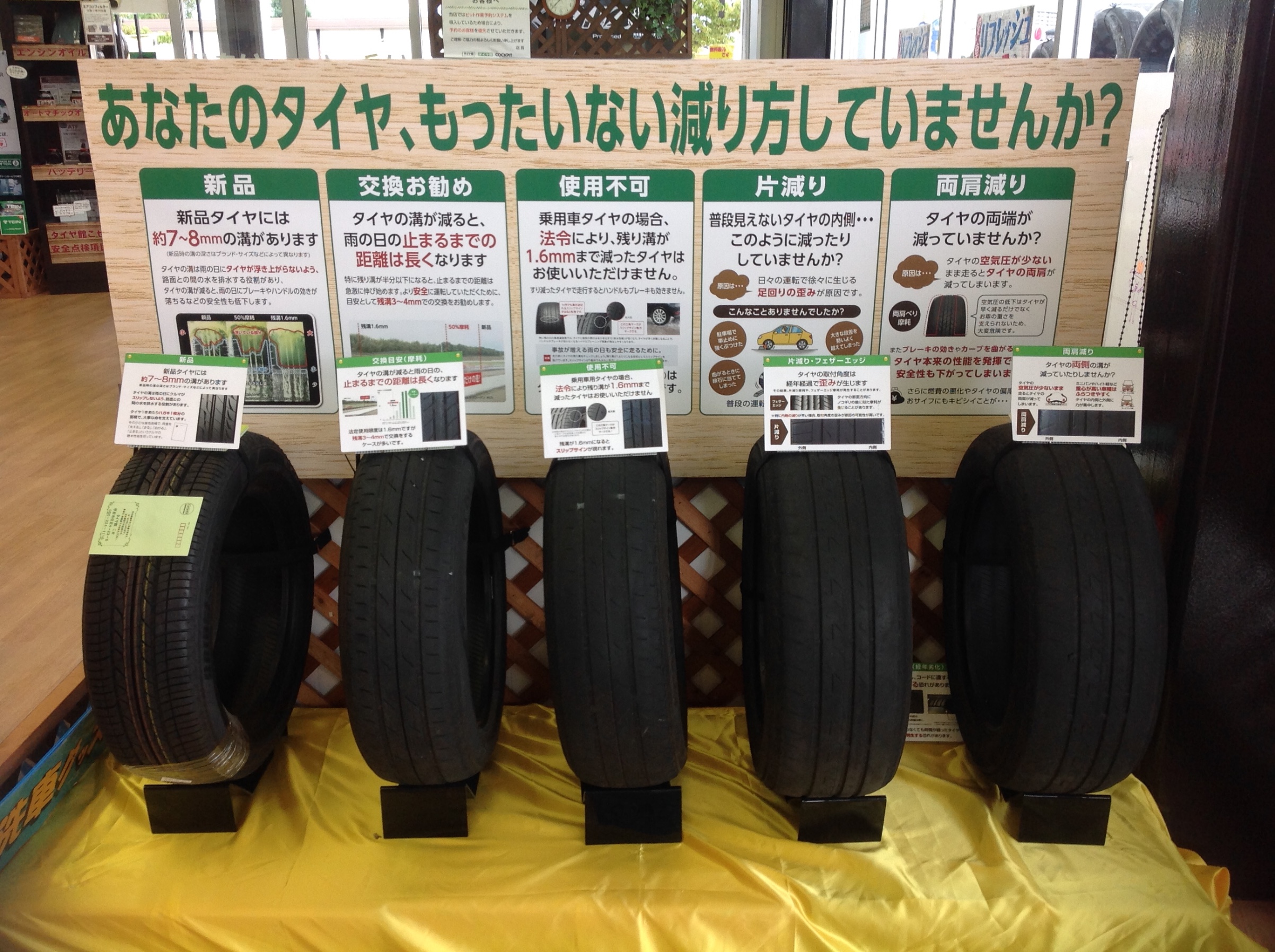 無料点検行ってます。 ポスト 2017年9月11日 今日は空はどんよりして今にも雨が降りそうな天気ですが今日はタイヤの溝について書かせて頂きます。 タイヤを交換し大体残り3〜4mmで交換が目安で交換が理想です。 車検では1.6mm以上溝がないと車検に不合格になってしまいます。 当店では、溝を測ったり、今のお客様のタイヤの状況、空気圧チェックなど無料点検を行っています。 気になりましたらお気軽にお越しください。 担当:スタッフ清水