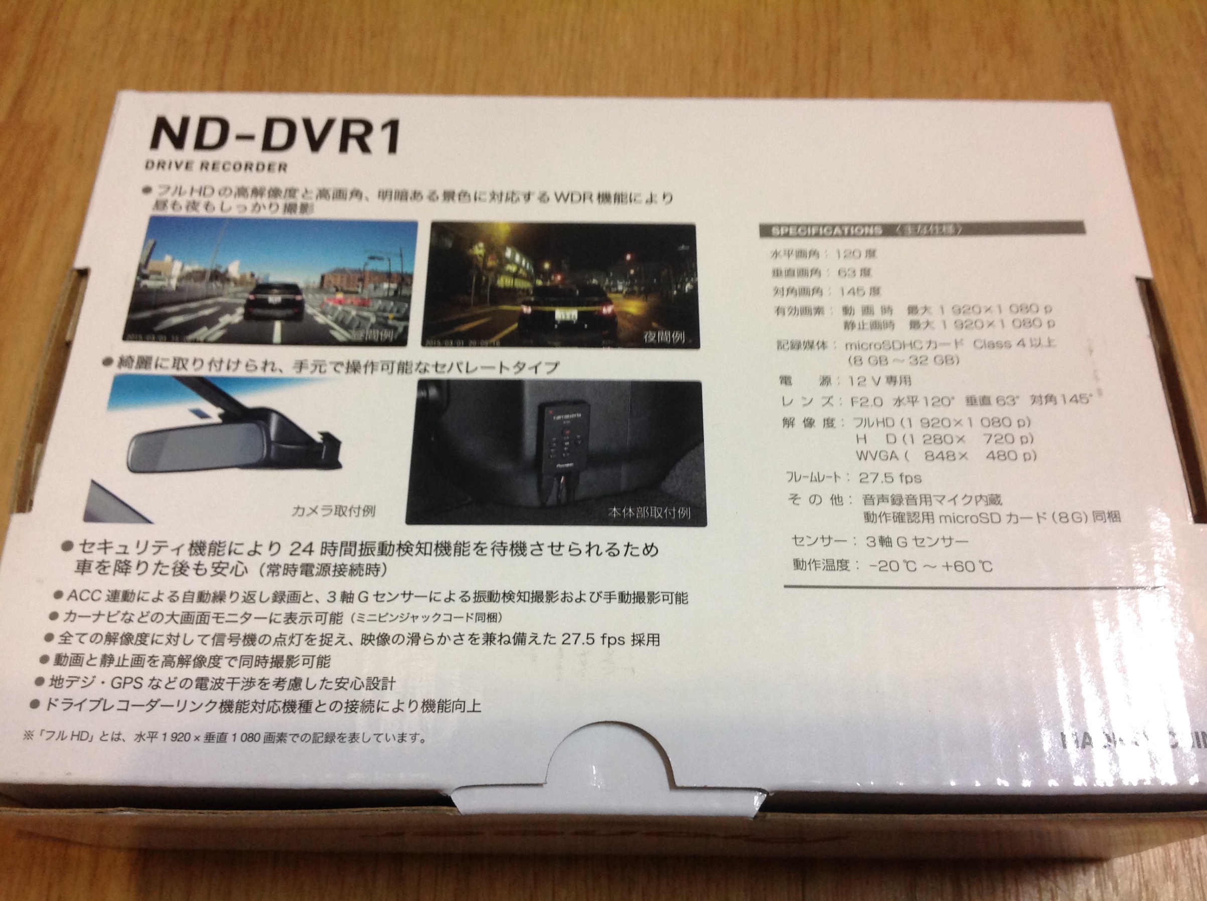 パイオニア製ナビと連動できる、ドライブレコーダー(ND−DVR1)