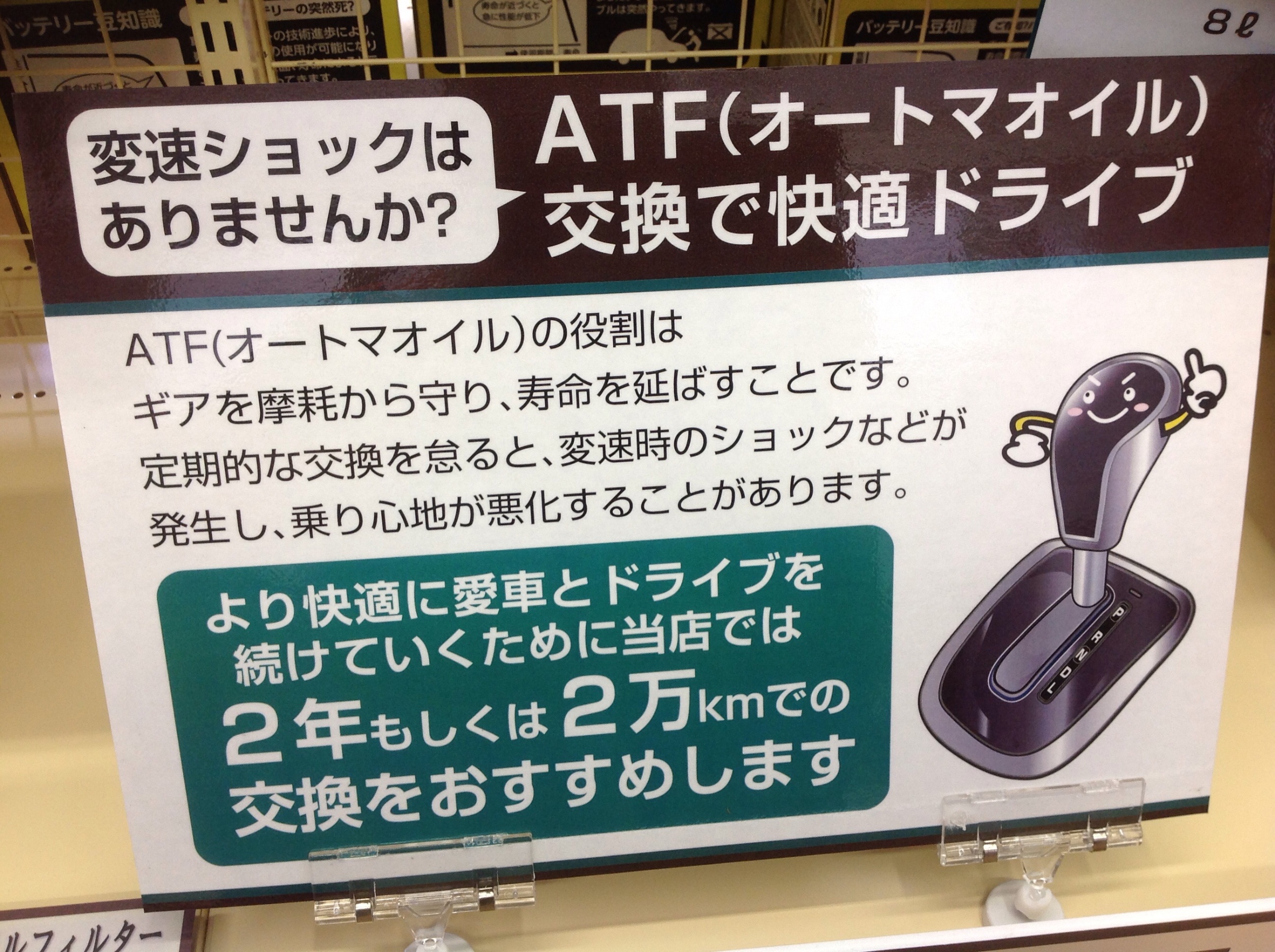 ATFはご存知ですか? ポスト 2018年5月20日 今日は涼しくなる予報でしたが、日差しが強くかなり熱くなりました ATFは交換されていますか? エンジンオイルと同様定期的交換が必要なんです。 汚れますと、燃費の低下、変速ショックの増大になります。 せっかく燃費のいいお車に乗っているのにATFが汚れていてはもったいないです。 気になる方は是非、無料点検を行っているのでお気軽に点検してみてはいかがでしょうか? 担当:スタッフ清水