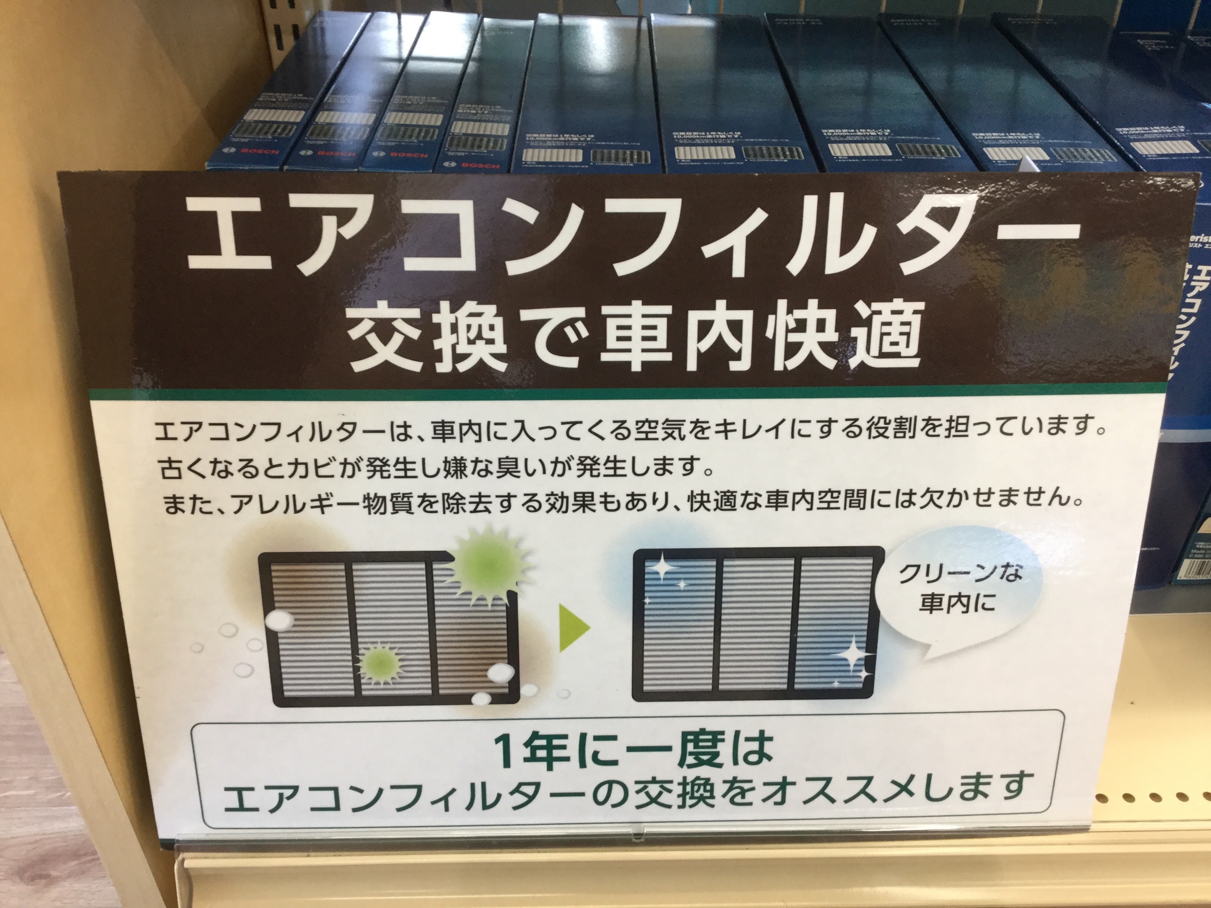 タイヤ館こせ店ではエアコンフィルターの無料点検もさせていただいております。