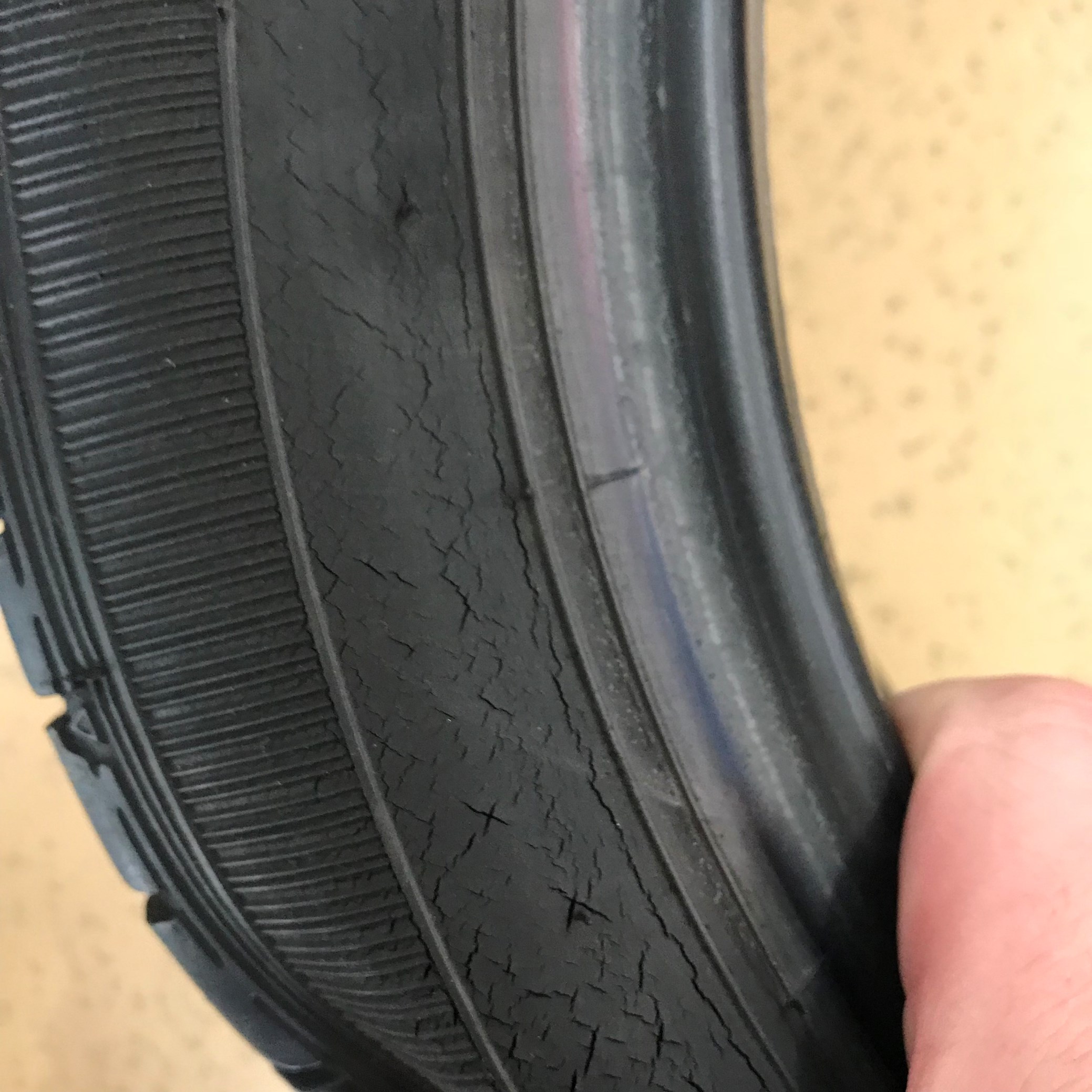 交換前のタイヤは溝はまだ残っておりましたが経年劣化によるヒビ割れが発生しておりました。