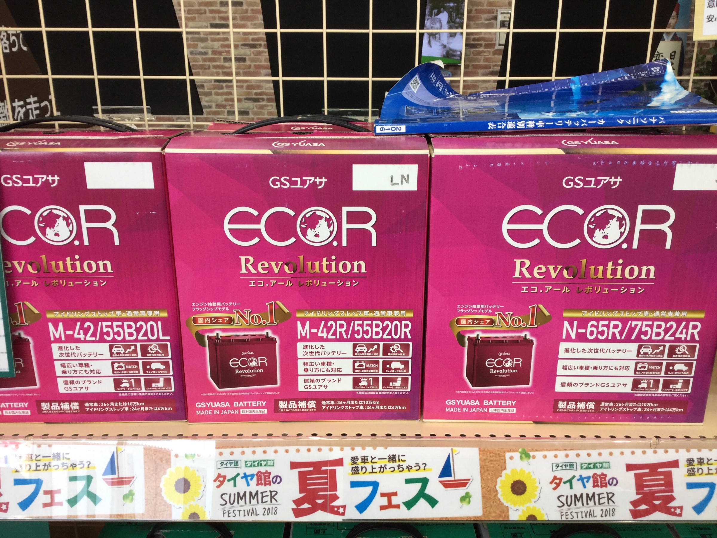 アイドリングストップ車にも対応したバッテリーや