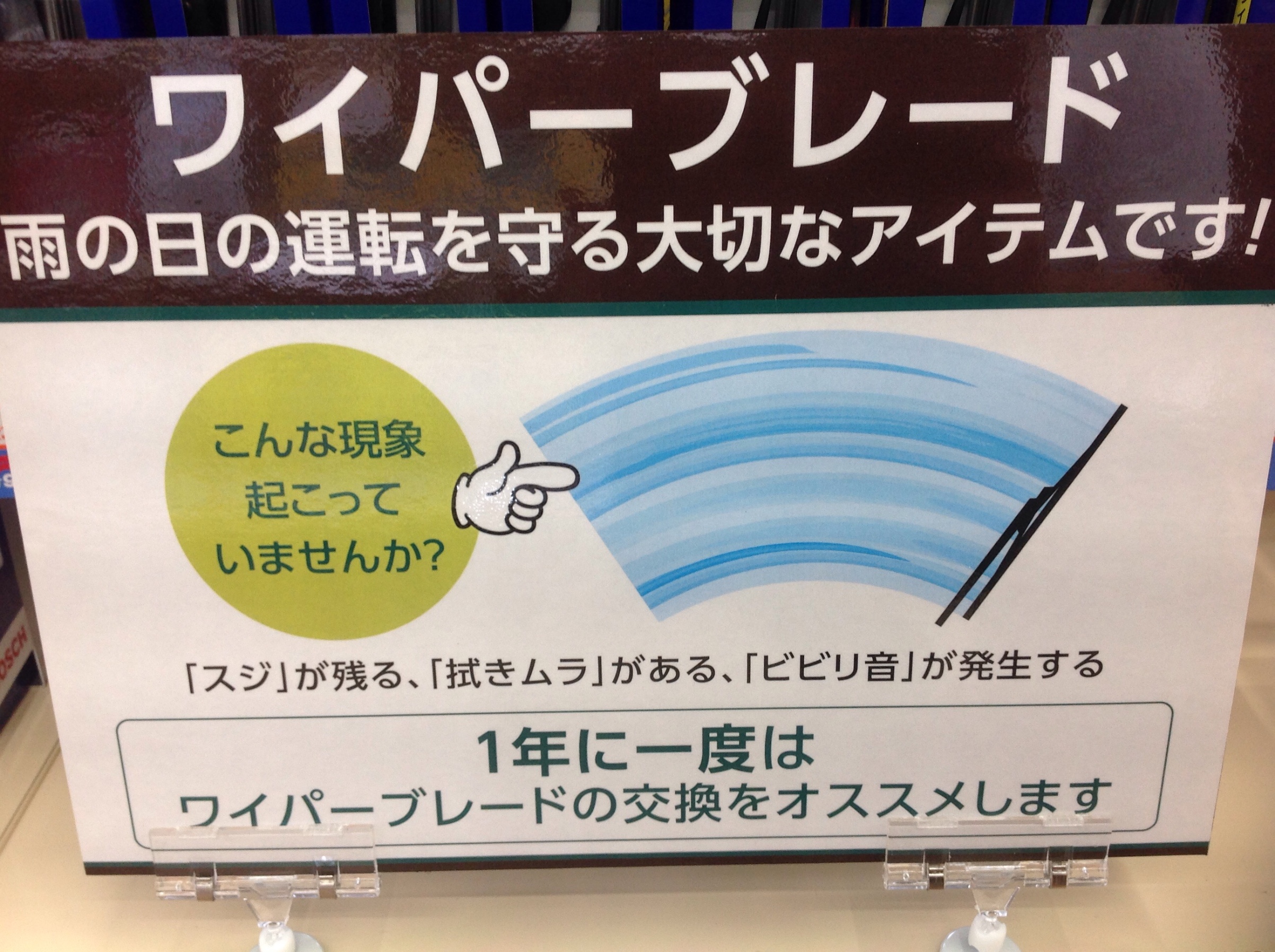 夏フェス開催中♪ ポスト 2018年7月20日 こんにちは☆ 今日も猛暑のタイヤ館こせ店です!! 毎日バテそうな暑さが続きますが 体調は大丈夫でしょうか?? 睡眠・水分補給・塩分補給をしっかりおこなって 体調管理をお願い致します! 暑い日は急な夕立やゲリラ豪雨が心配ですよね。。 大雨降り出した時にワイパーが効かないと 視界が悪くなりとても危険です! タイヤ館こせ店では撥水の効いたワイパーも 各サイズ取り揃えておりますので 急な雨に備えてみてはいかがですか? 担当:白井