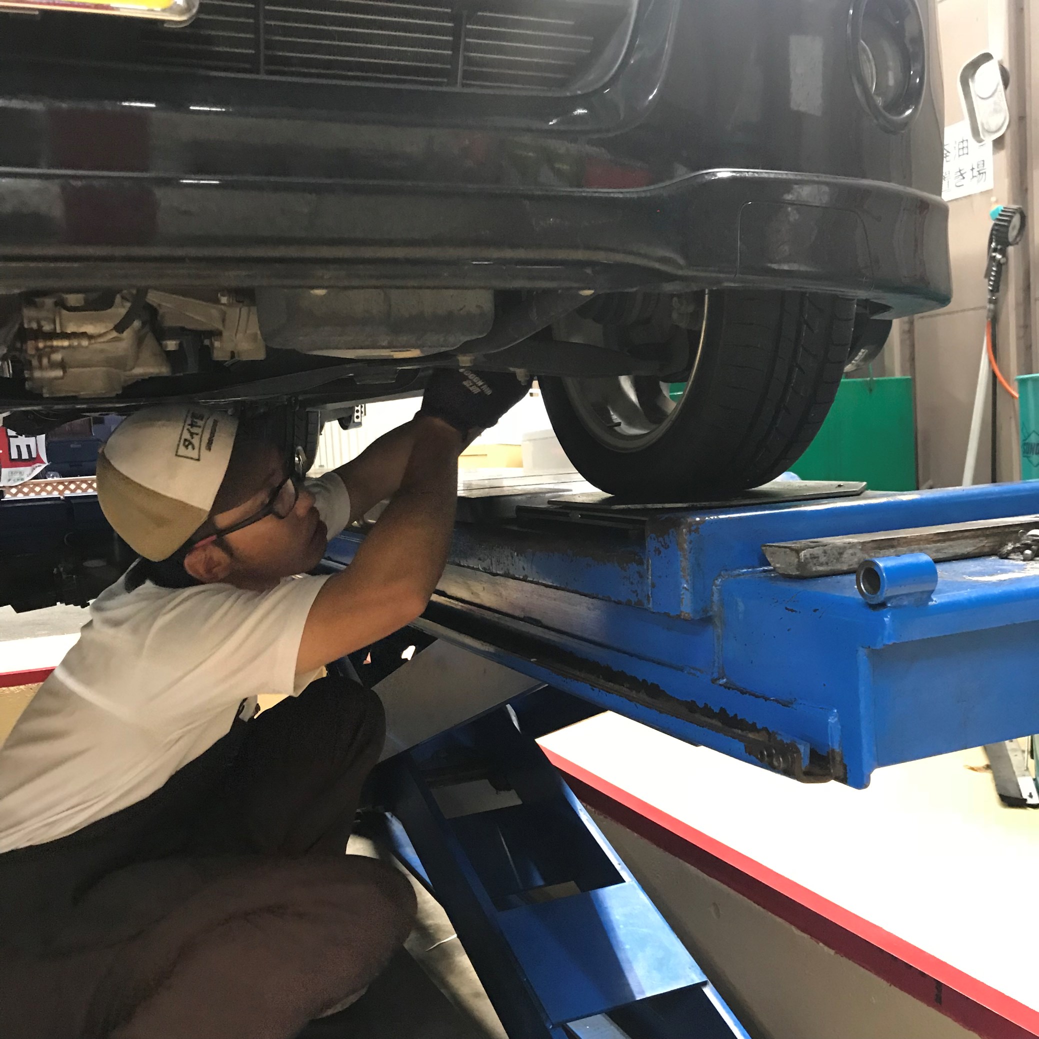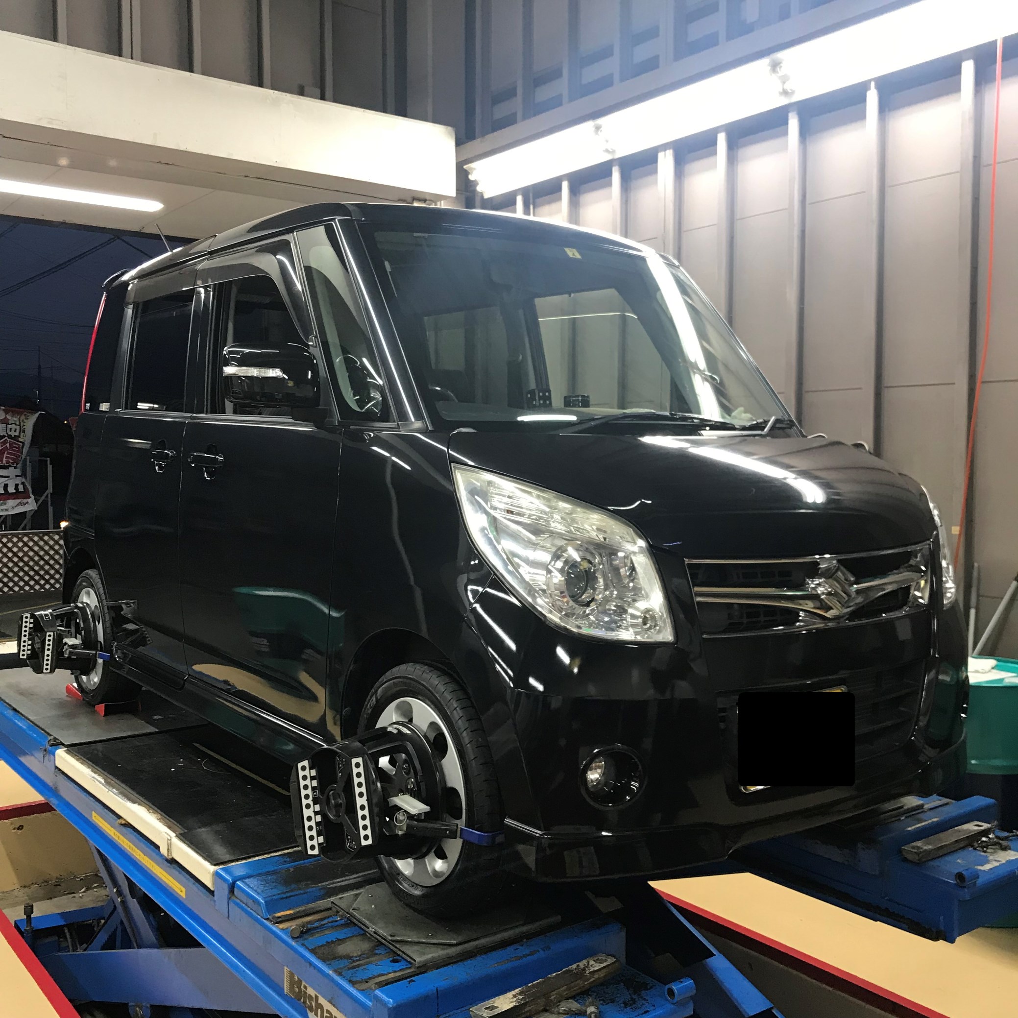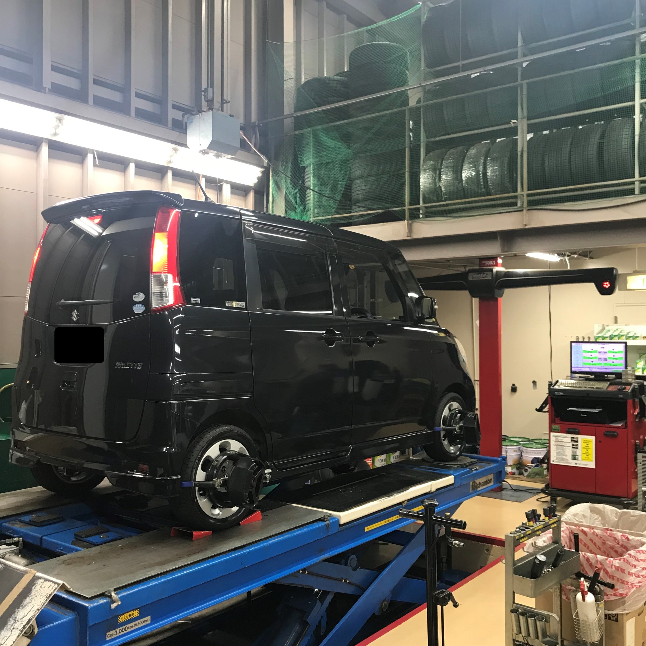 最後の仕上げにタイヤの角度調整アライメントを実施しました。