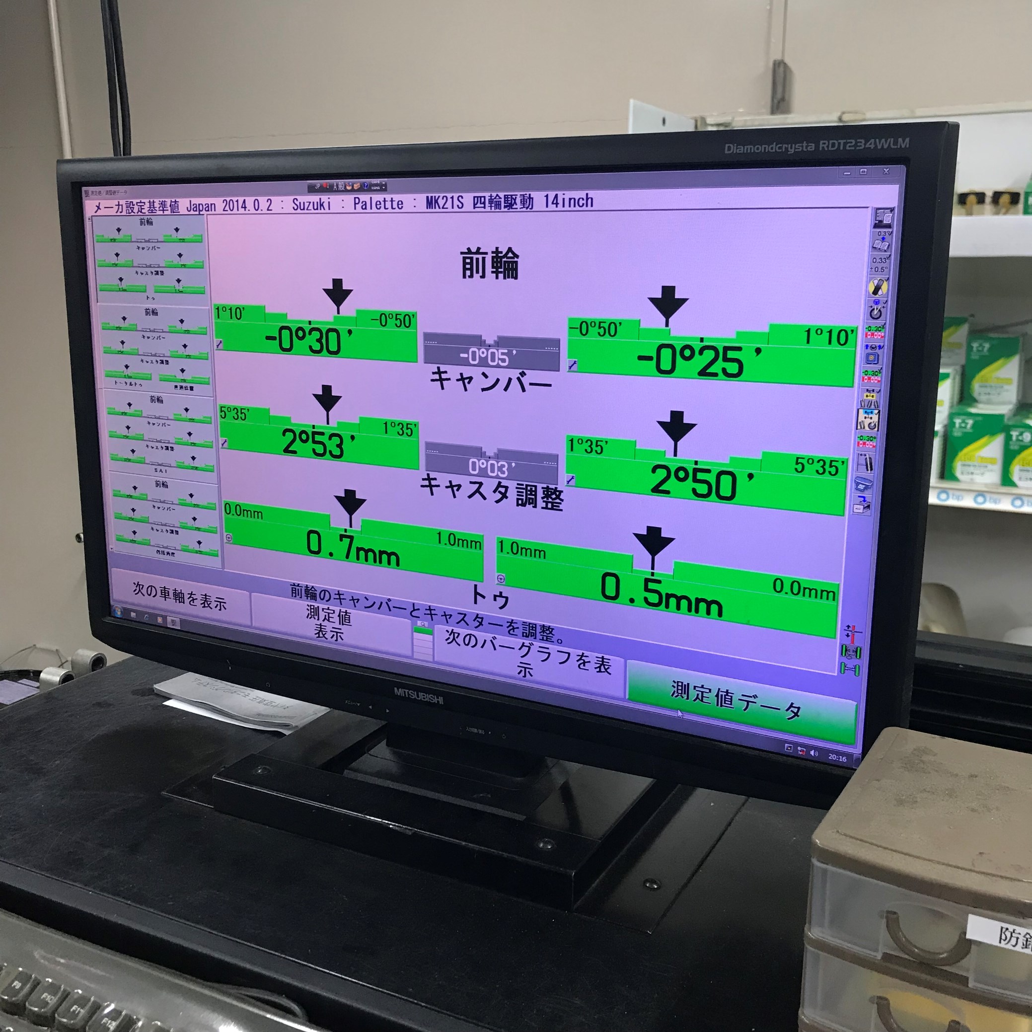 そのデータを見ながら車側の調整機構を丁寧に調整していきます。