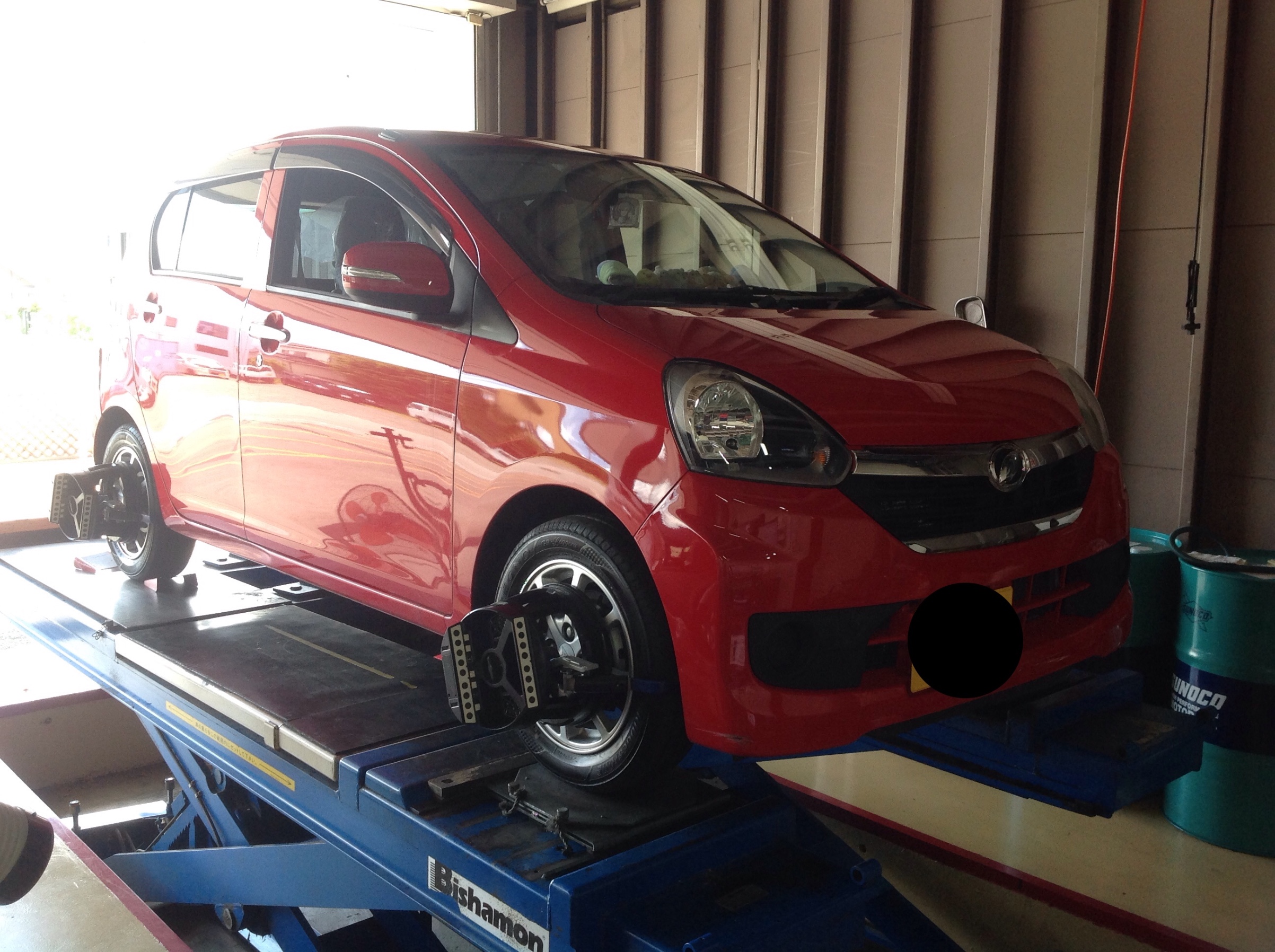 お車にしっかり組み付け、次はアライメントになりますの。