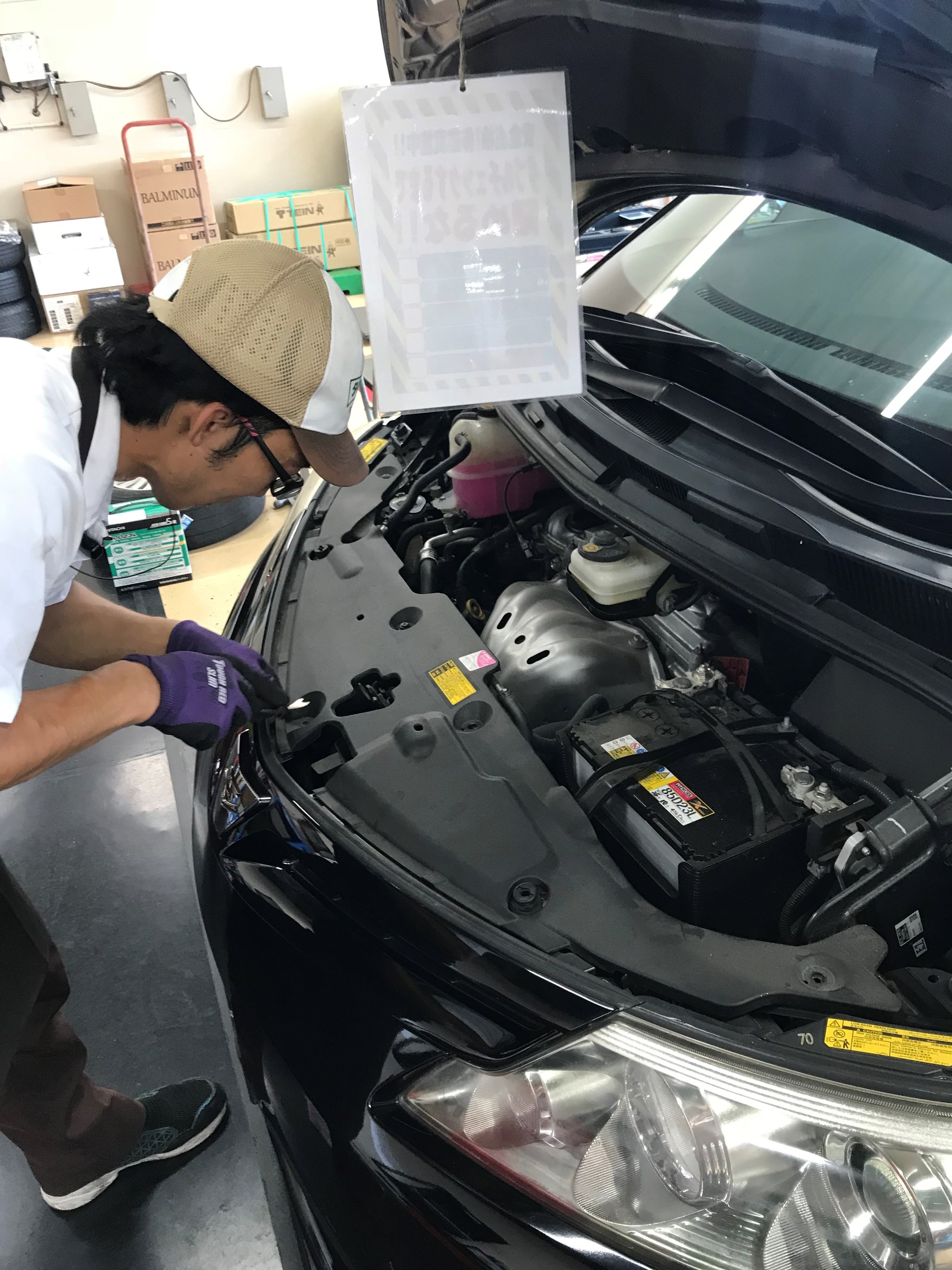 作業は10分ほどで終了。まずはバッテリーを外すためにエンジンルーム内のカバーを外していきます。