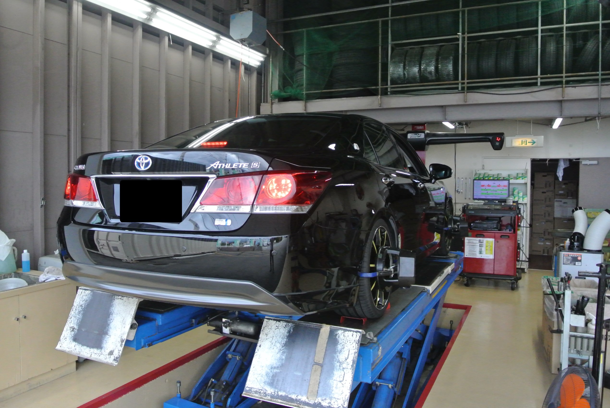 クラウン(210型)アスリートHV アライメント調整 ポスト 2018年8月23日 本日もタイヤ館こせ店は元気に営業中♪ トヨタ クラウンアスリートハイブリッドのアライメント調整作業の紹介です。 先日、足回りを入れ替えたことから最後の仕上げにアライメント調整です。 星野主任が迅速かつ丁寧に調整を行います。 作業は30分ほどで終了。甲府市でアライメント調整をする場合は最新テスターと熟練したスタッフが在籍して おりますタイヤ館こせ店にお任せください。 担当:西田