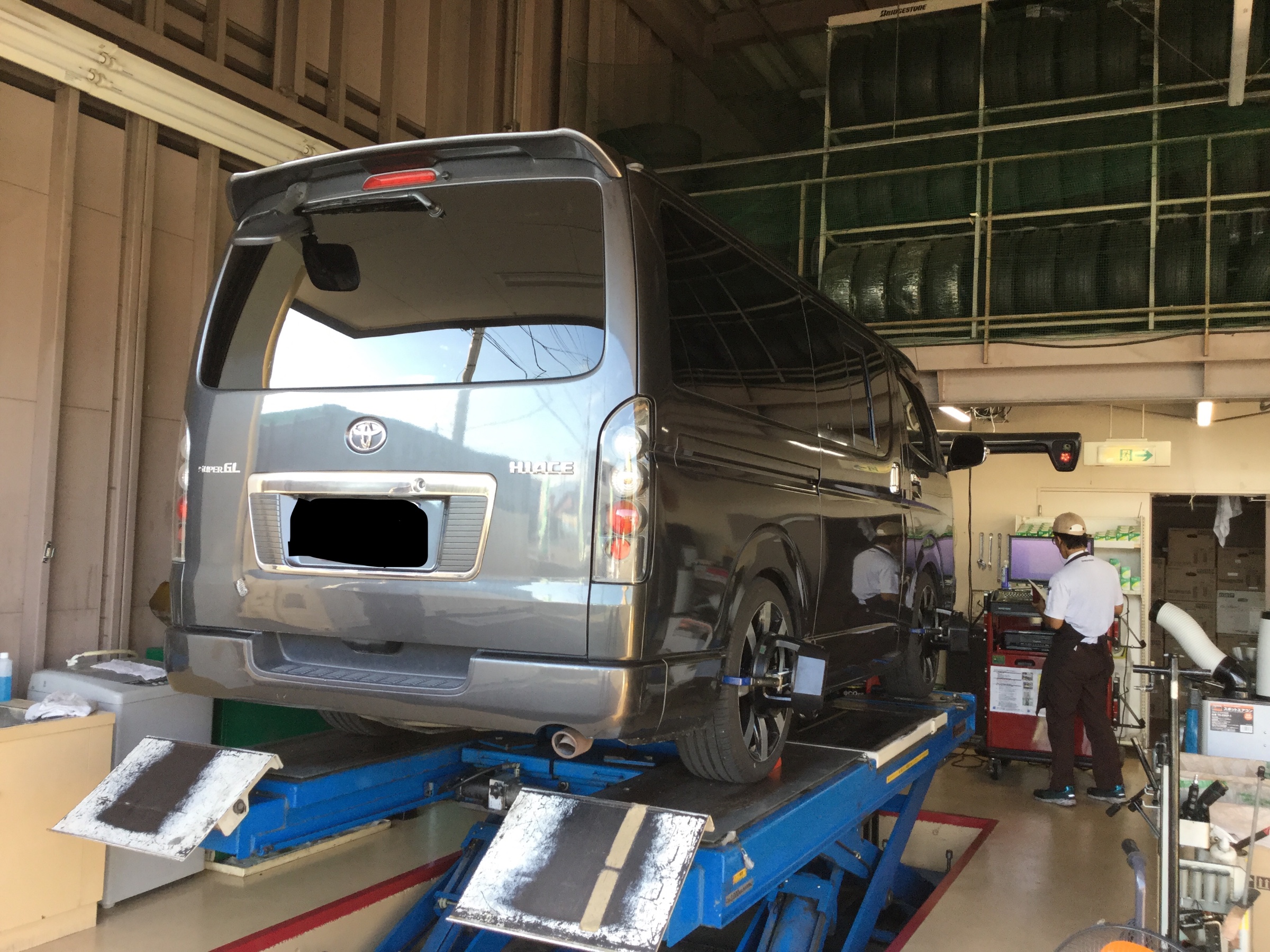 ハイエース アライメント調整! ポスト 2018年8月27日 こんにちはタイヤ館こせ店です。 ハイエースでお越しのお客様にアライメント調整をさせていただきました。 ズレている所をしっかりと調節していきます。 調節前と調節後の写真となっています。 最後に締め付けのダブルチェックを行い作業は終了です。 当店では無料点検を行なっておりますのでお気軽にお越しください。