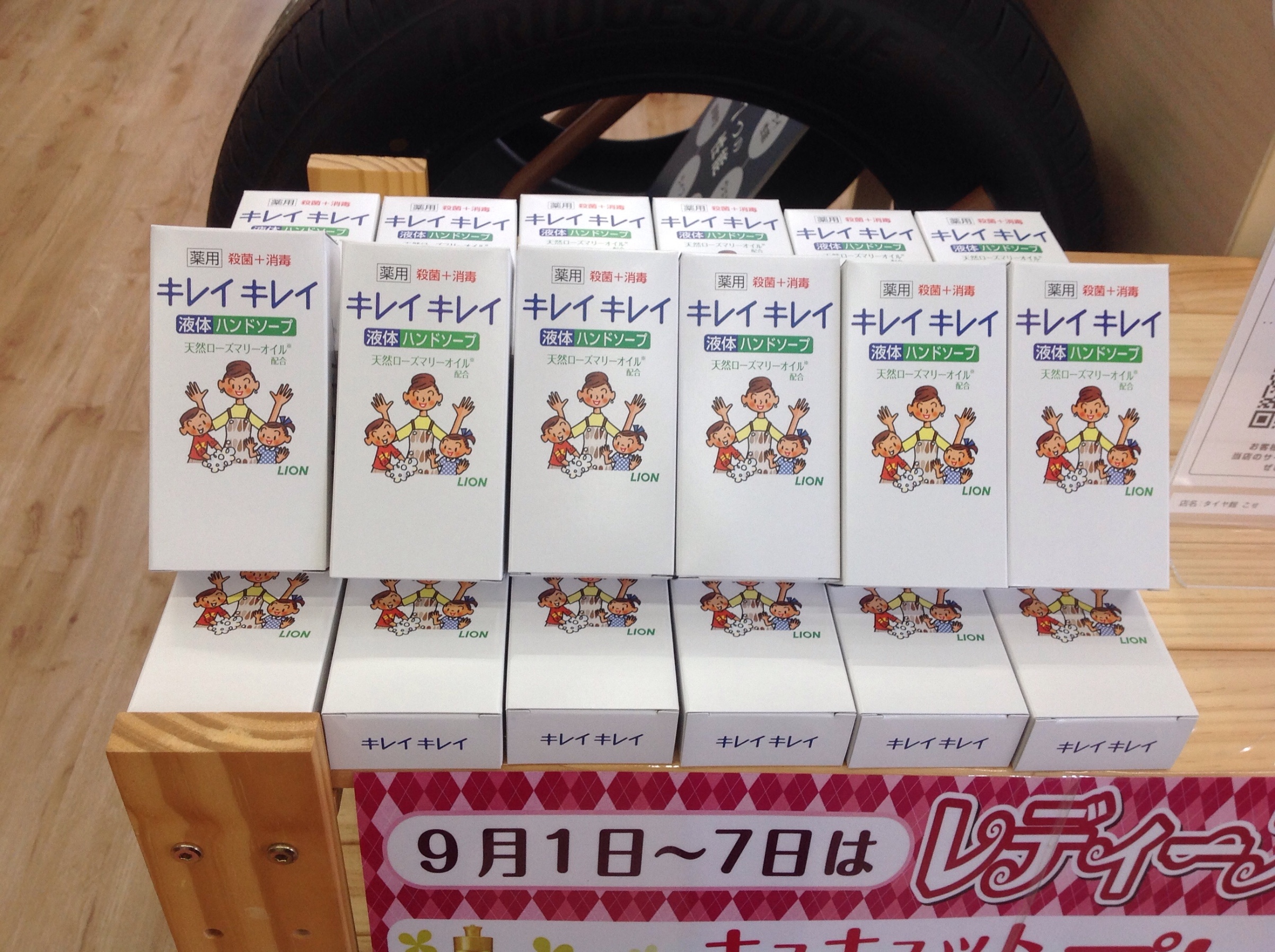 レディースウィーク開催中です‼︎ ポスト 2018年9月2日 昨日から開催中のレディースウィーク☆ 今月のプレゼントは キレイキレイ 液体ハンドソープ♪ 期間中に商品ご購入の女性のお客様に プレゼントしております(゚∀゚) 期間は9月7日までですので 是非、ご来店ください☆ 担当:白井ʕ•ᴥ•ʔ