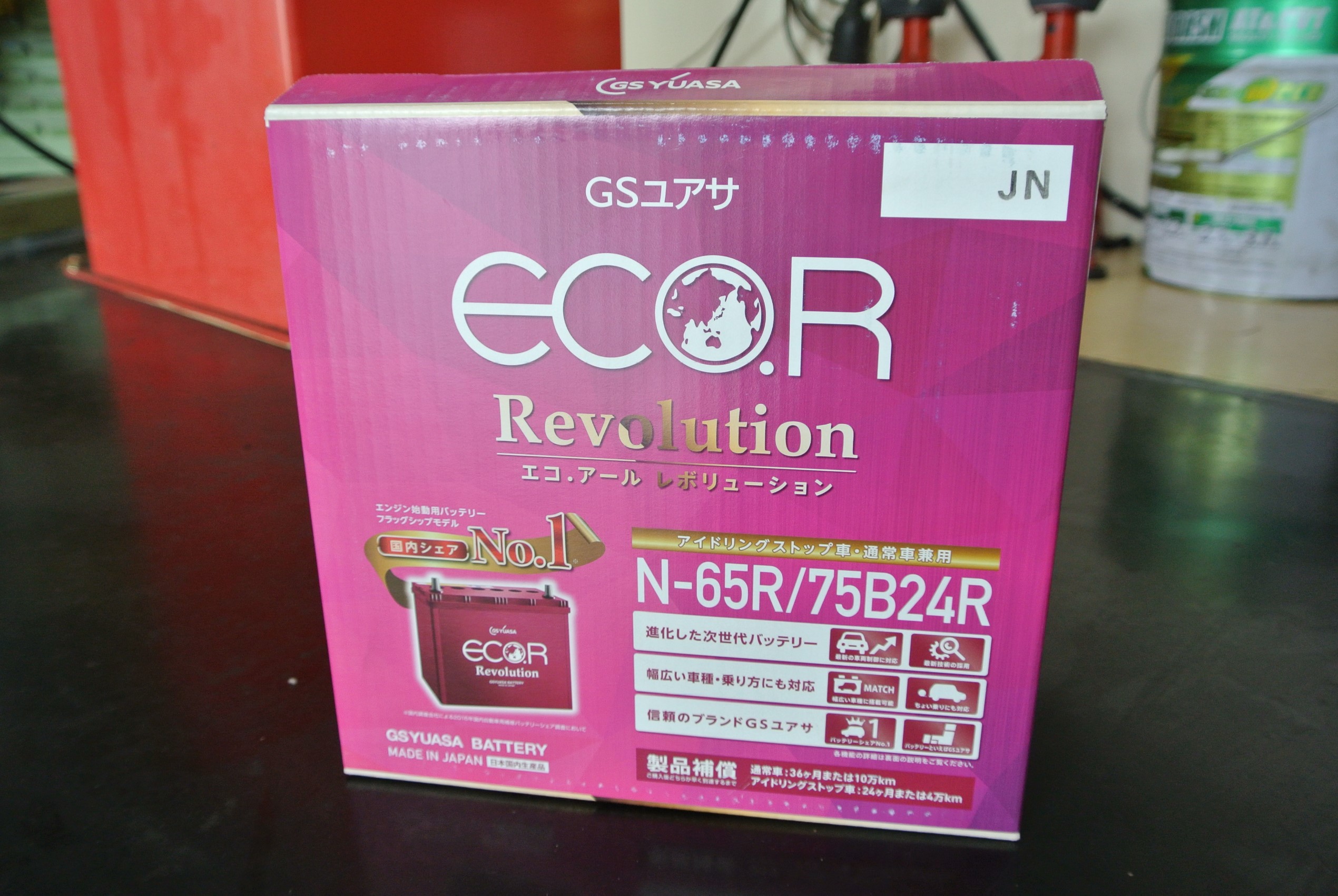 今回装着しますのはGSユアサ製高性能バッテリー エコR 75B24Rです。