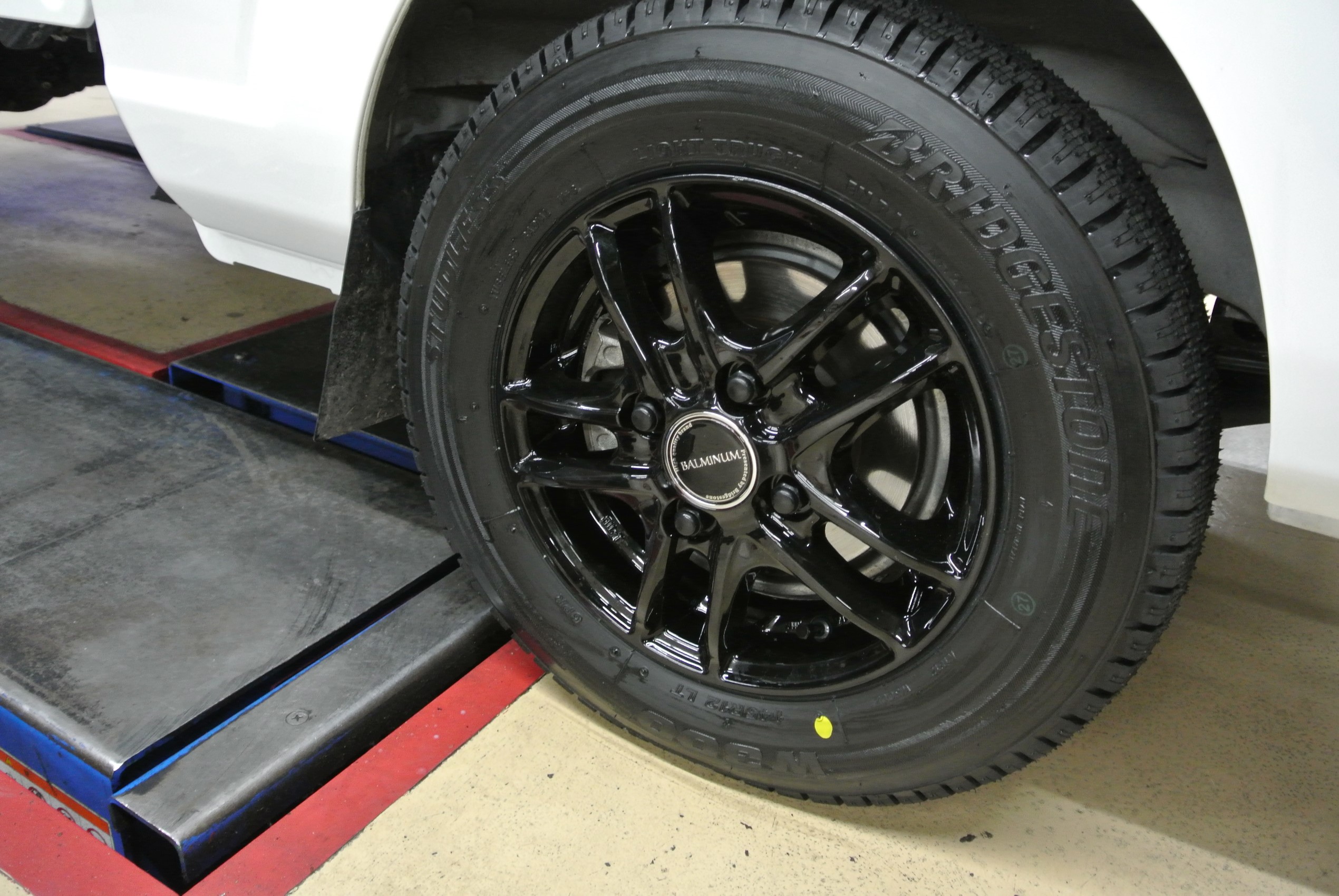 もちろん車検対応です。組み合わせるタイヤはブリヂストン バン用スタッドレスタイヤ W300です。