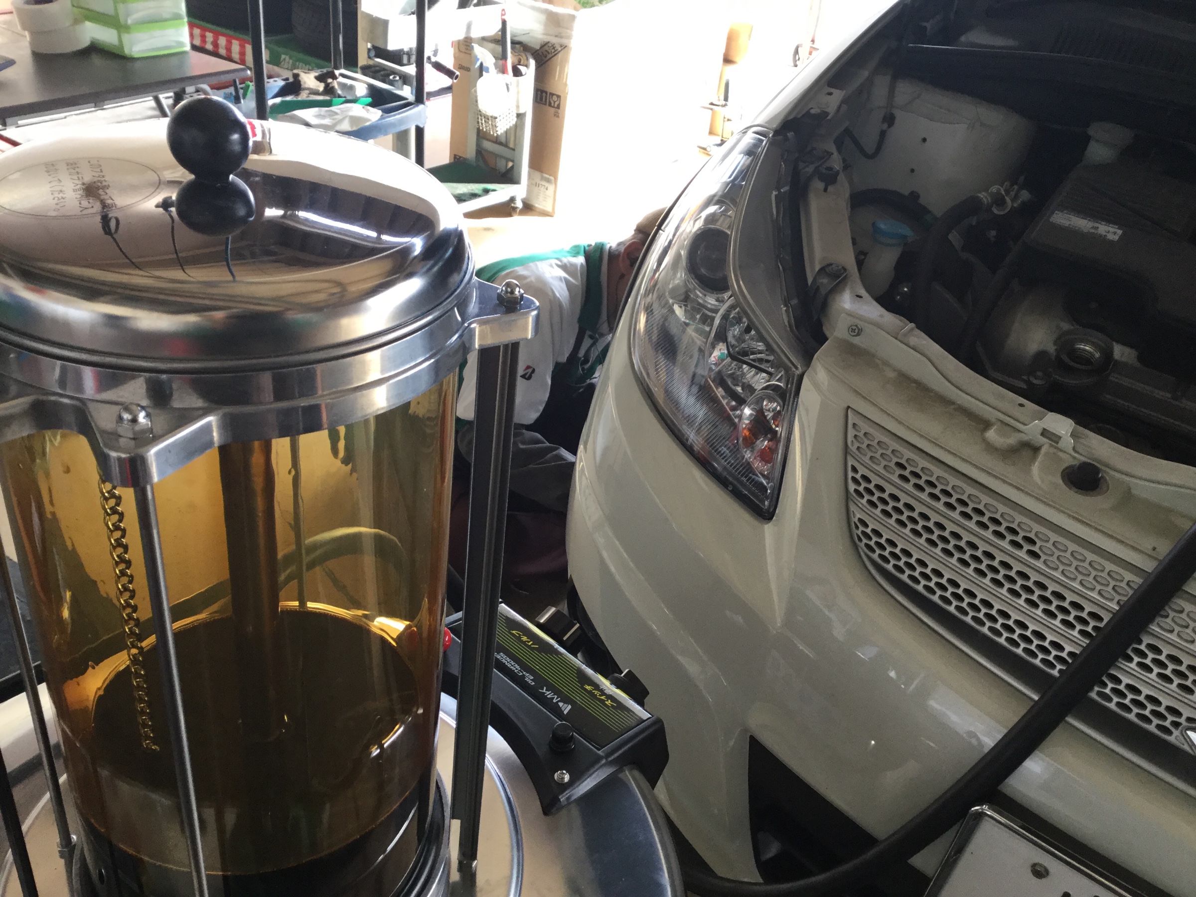 SX4オイル交換 ポスト 2019年2月11日 SX4オイル交換作業です! 機械を使用し上抜きでの作業です! オイルフィルターの交換と一緒にマフラーの防錆コーティングの施工もしました! 今回の使用オイルはエコクリアという洗浄剤が多く含まれるオイルで エンジン内部のこびり付いた汚れを落としてくれる効果もあるのでオススメです! 担当:星野