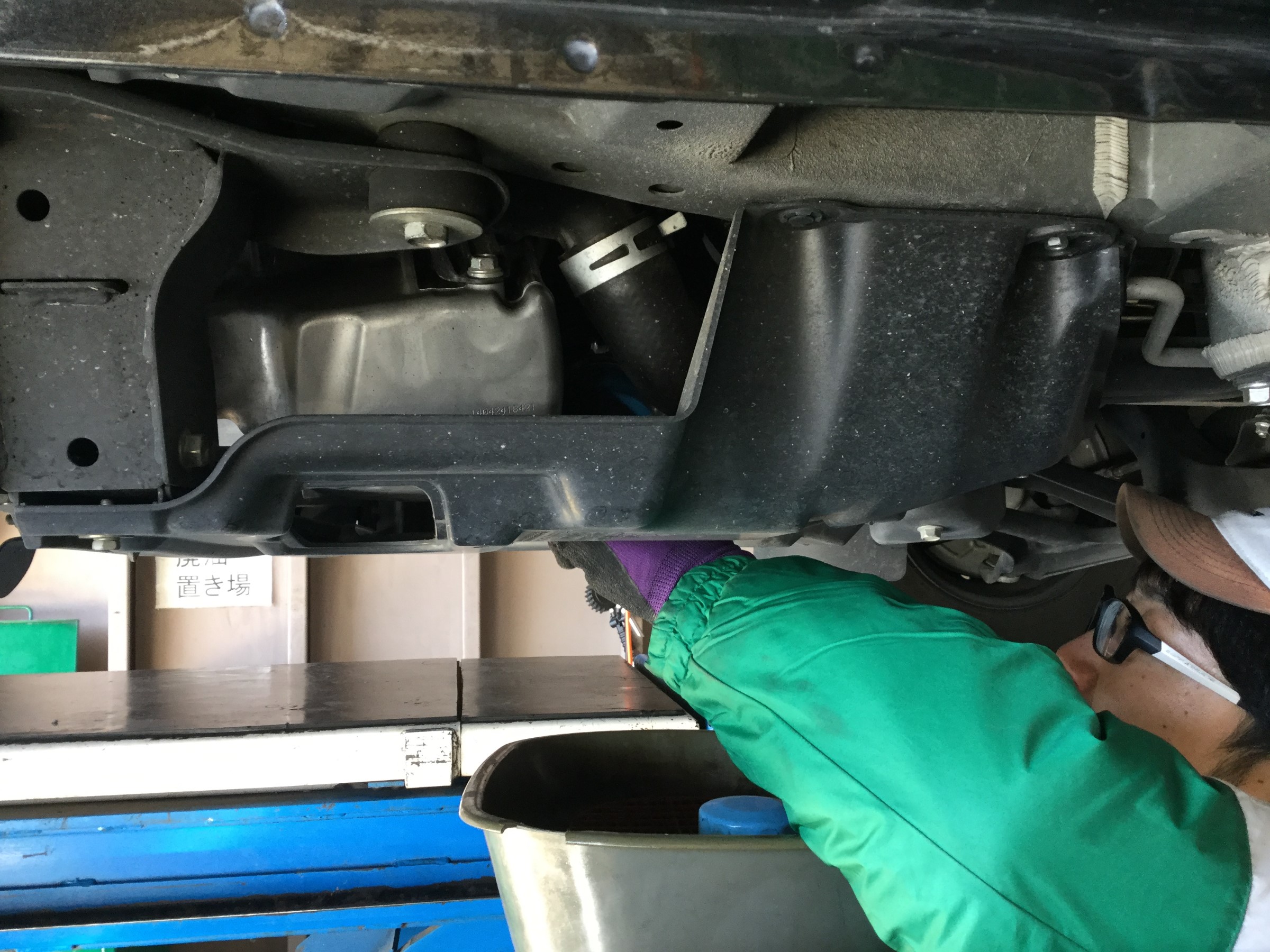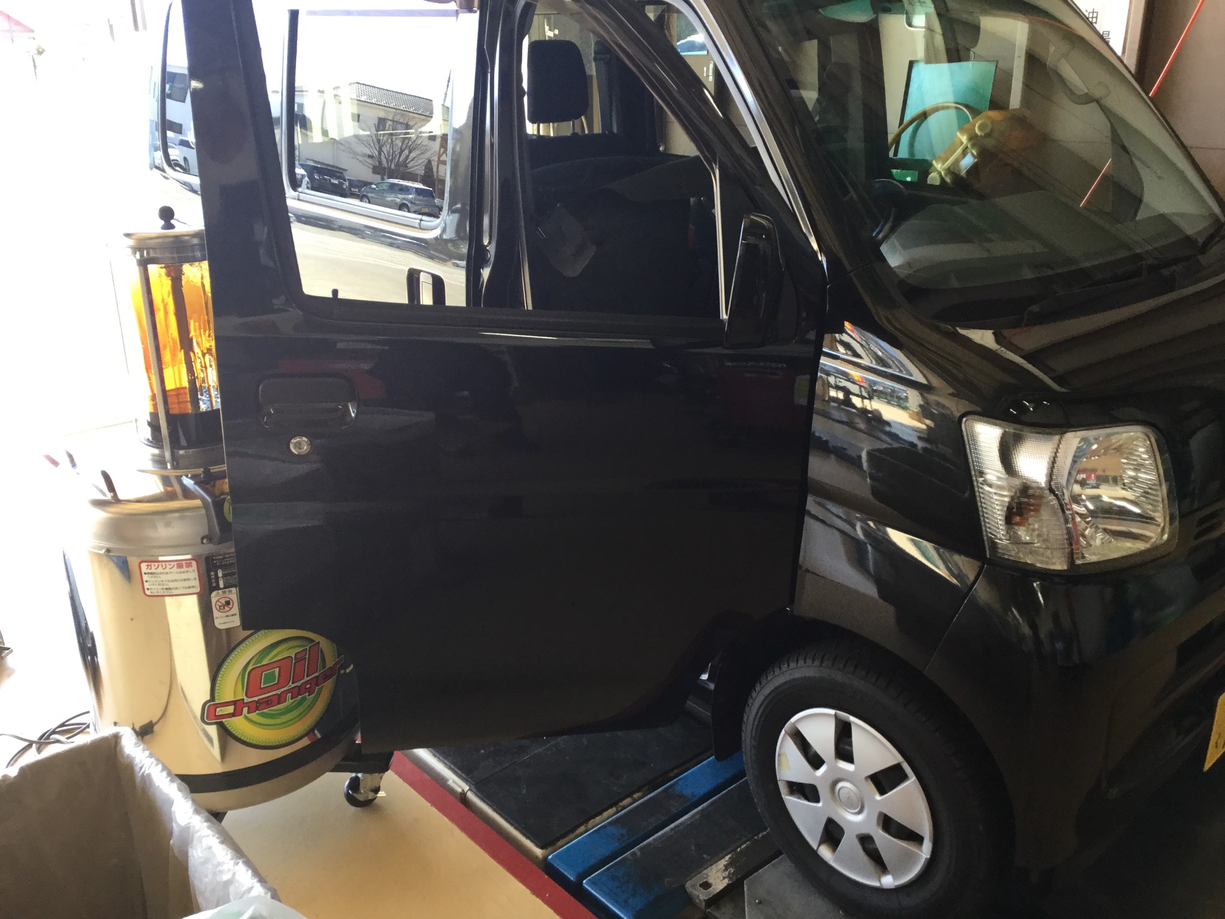 ハイゼットオイル交換 ポスト 2019年2月12日 ハイゼットのオイル交換作業です。 ピットに入庫し機械で上抜きします! その間に空気圧点検をし その後リフトを上げてオイルフィルターも一緒に交換です! 上抜きの機械があるので時間を有効に使え、スムーズに作業は終了しました! 担当:星野